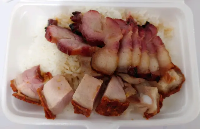 #新桂香燒臘 早幾年之前呢間燒臘檔曾經被捧到為「全香港最好食嘅叉燒」。講到咁誇張自然有好多人來試,不過大多數都係覺得平平無奇,而且佢嘅價錢唔算平,買一斤叉燒超過200蚊。自己唔係柴灣人,今次都係第一次去食,店舖真係做外賣為主,堂食兩張枱仔四個位,我就係其中一個。叉燒燒肉飯$50,並冇要求什麼肥叉半肥瘦等,叉燒同燒肉都比較瘦,並無預期神化搬咁好食,同意係一般般。反而送嗰碗例湯唔會好鹹落味精咁,材料十足有驚喜。幾年前明星係買例牌,叉燒應該有肥有瘦,明知你係名人正路都會畀靚啲,而我今次冇要求多數都會係偏瘦,但未至於柴。整體嚟講$50午餐呢個質素同份量都收貨,但就絕對唔係全香港最好食嘅叉燒。新桂香燒臘柴灣柴灣道345號金源洋樓C座地下17號舖…查看更多