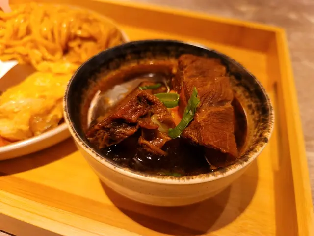 放工嚟食晚飯,要scan QR code 落單,一睇比實物餐牌貴咗,原來Apps自動要你加配甜品或沙律,算啦,反正都想試吓個奶茶奶凍。點左古早紅燒牛肉拌麵配鴨血拼素鴨、台式奶茶奶凍、抹香奶茶加奶蓋少甜、追加小食糖心蛋。古早紅燒牛肉拌麵,拼麵有少許麻辣味,都幾好味,有半隻糖心蛋。成碗得兩嚿紅燒牛肉、一件紅蘿蔔、一件白蘿蔔,呢個餐要$110,得兩嚿牛肉,未免孤寒咗啲。而且唔係切片,雖然牛肉都淋,但成舊咬啲牛肉攝晒牙罅,影響口感。配的鴨血、素鴨味道幾好。抹香奶茶加奶蓋少甜,仍然好甜,飲完好口渴。追加小食糖心蛋,呢個最唔抵食,味道Ok但$26 (仲要加一)得一隻糖心蛋🥲台式奶茶奶凍,賣相好吸引,味道都幾好。整體而言,味道都算OK,但埋單連加一總共$161,都幾貴,份量對不起這個價錢,男士吃未必夠飽。下次再來的話不會選擇晚餐,午餐好似平啲。…查看更多