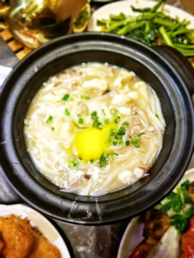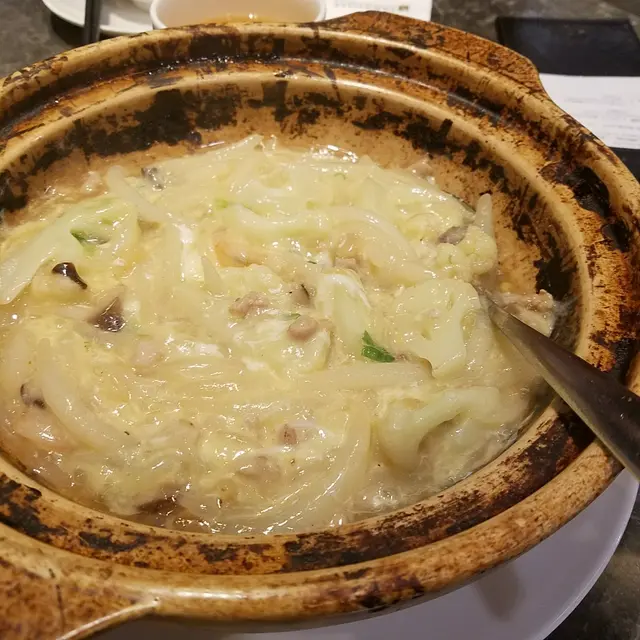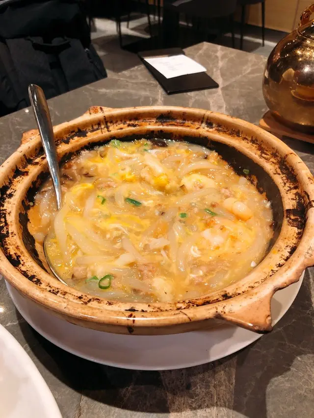 新加坡是多元文化、多元民族的移民國家,由於地處熱帶,南洋的植物香料異常豐富,主打正宗新加坡南洋中菜的樂天經典,以熟悉的中式食材,糅合娘惹咖哩、參巴醬、香茅、班蘭葉等典型東南亞香料,演變成獨樹一幟的異鄉風味。內裡面積寬敞,坐得舒適,裝潢散發東方韻味而不落俗套。茶錢每位 $10,前菜收費為$15一碟。餐牌選擇繁多,大部分菜式都有大中小的份量可選,就算只有兩個人也可點細碟頭,不怕會造成浪費。將傳統中菜結合南洋天然香料、食材和烹調手法,以嶄新手法將懷舊味道重新演繹,為港人平時吃慣的中菜注入新鮮感,酸甜生魚片 $112將酸甜醬汁與炸酥的魚塊相搭配,色澤艷麗,叫人食指大動 ,在熱辣辣的夏日時光裡誘發食慾。酸甜開胃的醬汁調較成濃稠得宜,即時令人胃口一醒。外層粉漿不會過厚,無骨魚片啖啖肉,魚塊雪白嫩滑,炸得外脆內嫩。古早魚香老鼠粉煲 $128老鼠粉煲的名字雖然獵奇,卻是店內的人氣招牌菜式,其實是因選用的銀針粉形狀細長且兩端收窄,恰似老鼠尾巴而得名。趁著熱鍋中的窩蛋還沒熟透時,倒下特製鹹魚酸柑醬再拌勻,鹹魚獨有的濃鬱鹹香氣息瞬間四溢瀰漫。蝦肉夠大隻厚肉,肉質新鮮爽彈,老鼠粉質感煙韌爽口,彈性十足,融合稠身鹹香的湯羹,入口滑溜溜。點了兩款口感清涼而又賣相精緻的南洋甜品,趕走炎夏的暑意。水中花 $38中央飄浮著千絲萬縷的豆腐花,展現師傅的精細刀工,宛如一朵水中綻放的白菊,姿態脫俗清雅。除了帶有豆腐花本身柔嫩的質地之外,亦帶有一絲絲的獨特口感,為這道經典甜品提升層次感。三色桂花班蘭糕 $48三色糕由椰奶、班蘭和桂花果凍組成,白黃綠三色相間交錯,顏色絢麗多彩。一口咬下,三層不同的口感和味道交織在一起,糕身口感Q嫩爽滑,沁人心脾,留下清甜甘香的餘韻,甜而不膩。…查看更多