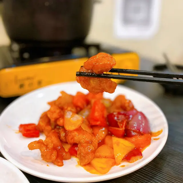 咕嚕肉份量都唔少,醬汁超有誠意,每一嚿肉一塊配菜,都沾滿醬汁,而且咕嚕肉又真係脆皮,外脆內彈牙