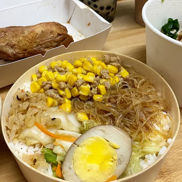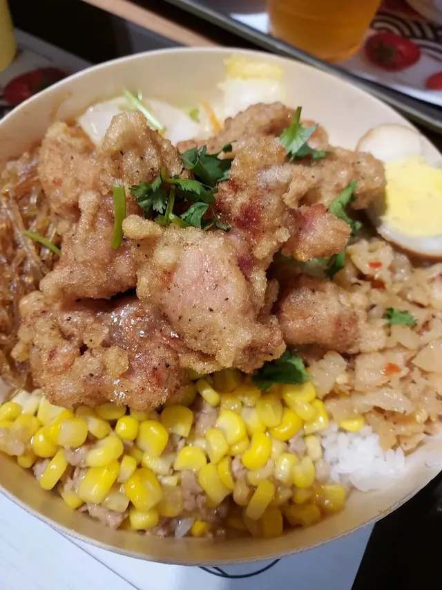 食台灣嘢鹽酥雞真係唔少得, 配菜有粉絲,粟米,炸菜,半隻鹵水蛋,相當豐富,而主角鹽酥雞好香脆入味。香酥豬扒肉燥乾拌麵