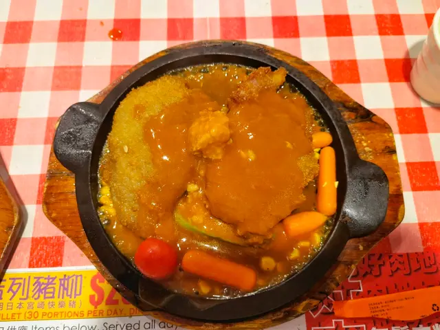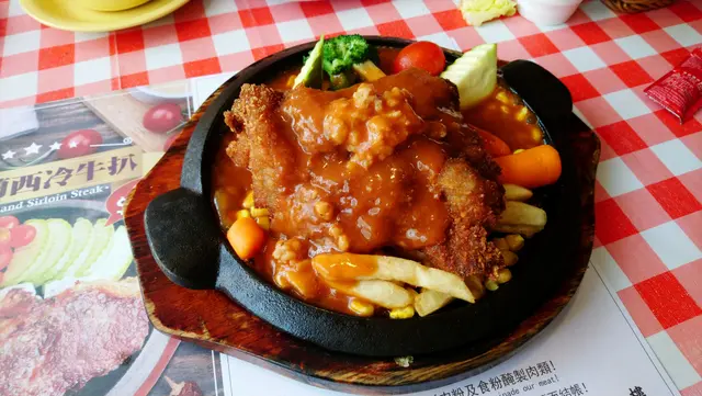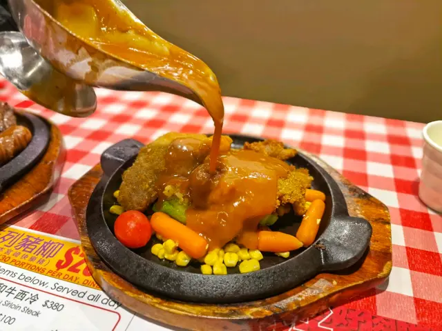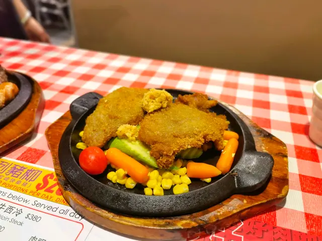 ,仲要厚切薄薄嘅炸漿好香口,肉質彈口唔乾揀蒜茸汁有預先放咗粒粒蒜茸喺豬扒上再淋汁,蒜味超濃➽+$22配套餐羅宋湯好足料,有粒粒牛肉薯條啱啱炸起熱辣辣仲有餐包同嘢飲甜品可以揀雪糕🍦或者啫喱加花奶餐廳話係用紐西蘭牛肉, 質素係真係幾好而且個價幾抵食,性價比高…查看更多