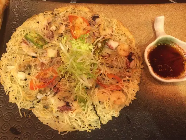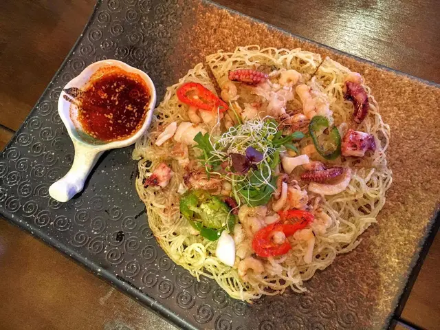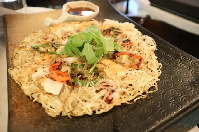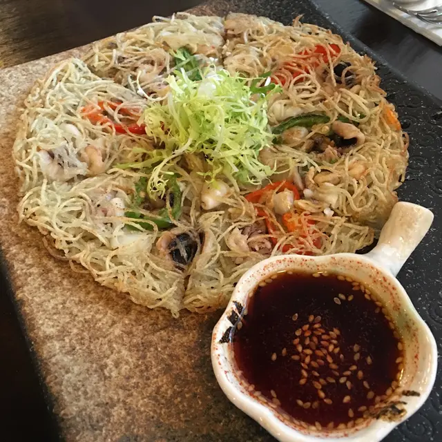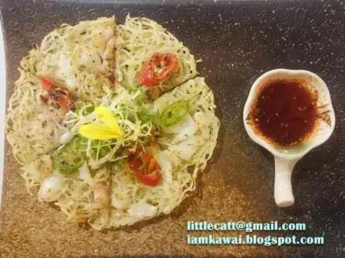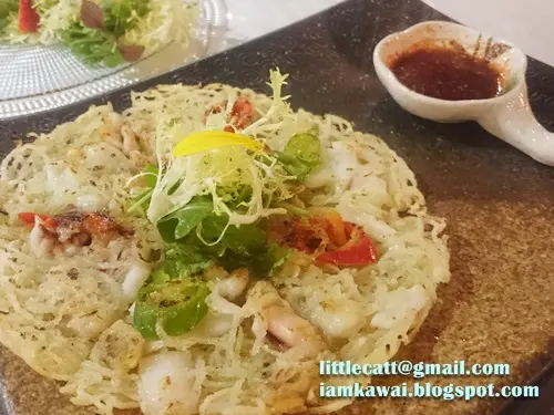 向著月兒唱羌羌水月徠他們每道菜名都十分有趣,長到不得之了,以韓國風景及日常事物作菜名。這道菜以薯絲炸香,內藏海鮮和青椒,配上酸酸帶微甜的醬汁蘸食,幸好能一解點點油煎的膩滯感。可是食落沒有太大驚喜,而且比較街外餐廳的有點偏油....