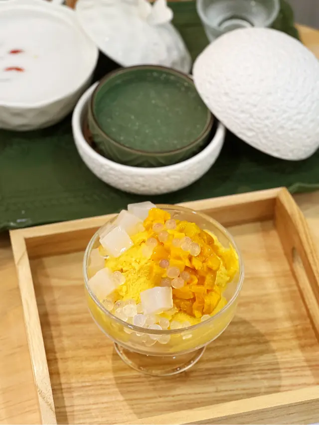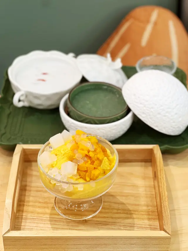 這間本地人氣甜品鋪的新分店選址葵芳,裝修同樣採用莫蘭迪綠色調,配合白色與淺木色,還有杏仁公仔陪伴,充滿悠閒感覺。點食都唔肥養生套餐 - $88秘制椰汁杞子燉海椰子濃稠的椰汁好清甜,一條條果肉細嫩透白的海椰子好有口感,加上滋補的杞子,好養生!甜菊糖燉雪燕(150G)雪燕美白補血,舀起來一絲絲晶瑩剔透,口感細滑帶彈性,另上的日本甜菊糖,自行控制份量,清甜可口,不會被人體吸收,適合生酮飲食及減糖人士。呂宋芒奶昔爽冰 - $59嚴選新鮮的菲律賓呂宋芒果製成,綿密細膩的沙冰充滿香甜的芒果味,更有多汁的芒果肉、爆珠及啫喱好豐富。…查看更多