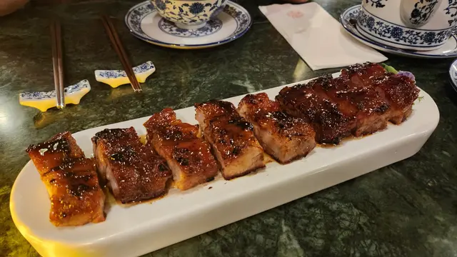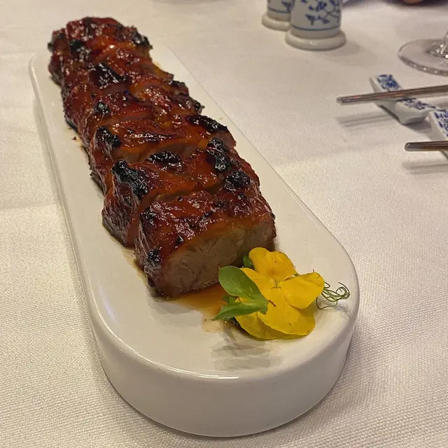 今日立秋,又是我其中一位最重要的親人的生日日子,因為主角最近喜歡上了「和昌飯店」的食物,所以我們特意安排了在這裏為親人慶祝吃生日午餐。「和昌飯店」 位於灣仔莊士敦道,被市建局保育的歷史建築物和昌大押內,擁有1樓及2樓的使用空間。百年的歷史古蹟有一條很窄很高的樓梯,但樓梯只能走到1樓,如要上2樓必須在1樓轉乘升降機或可在大王東街乘座升降機直接到達;地鋪則是一家高級意大利餐廳「Crust Italian」。翻查資料,和昌大押是由4幢相連、設有長廊式陽臺的唐樓組成,樓高四層,建築物已有逾百年歷史,是少數留存的四幢相連陽臺長廊式樓宇;有蓋遮擋的露台,樓底高,設有採光井,通往陽臺處裝有法式大窗。最大嘅特色是和昌大押外牆使用典雅的水磨石工藝裝飾,在香港真的是買少見少,大家經過記得參觀一下👍。親人喜歡這裡的即製點心和高級中菜,雖然我們都不好夜蒲飲酒,但這裏晚上可以是一間酒吧,真是中西合璧。 我們一家人在今年的端午節也來過一次吃午餐,菜式在這食評後半部份一併介紹。今天生日宴共有10人,食物包括粵式點心、燒味、海鮮和特色粵菜等: 點心~紅米海皇脆米網腸($108/6件) 脆米網腸很多酒樓都有提供,這道點心賣的是特色,特別在用紅米打磨成米漿來製作腸粉;~ XO醬煎腸粉($88) 腸粉雖然是用煎的烹調方法,不過一點也不覺油膩;~ 雞仔鹹水角($88/3件) 媽媽最喜歡吃鹹水角,所以必點; 而且這個雞仔鹹水角造型漂亮,雞仔在雀巢內等着媽媽餵食,相當可愛,但最終卻被我們殘忍的吃掉喔🤣;~ 五味醬炸魷魚鬚($108) 用五種味道的醬料醃製後再炸,但其實我吃不出是用什麼醬料醃製?味道有點像椒鹽味,炸漿也相當脆口,美中不足的是魷魚鬚太細條,若用上大條厚肉的魷魚鬚,應該會更好吃;燒味~ 和昌炭燒叉燒($398/共8件)厚切的叉燒又軟又腍, 蜜味有燶邊,肉味濃👅,可以説得上是鎮店之寶, 我們一共點了兩碟,我們10人有16件,實在太好吃我吃了兩件😋😋;~ 和昌片皮鴨($798) 片的方法皮連肉一起,吃下會感到比較乾身,老公喜歡皮帶着多一點肥膏的部份,這隻片皮鴨比我們端午節時吃的燒鵝較好,但也並不太突出;要讚的是裝麵粉皮的蒸籠下面也是放了一大盤熱水,水蒸氣可令麵粉皮保持濕潤 (康怡金公館也是一樣);我帶了鴨殼回家用涼瓜麵豉醬炆煮,家中90幾歲,只剩五夥牙齒的老人家非常喜歡,稱讚燒過的鴨肉非常香,吃剩也不捨得丟棄,竟然吃了三餐😲!海鮮全日主角出場,我們預訂了一隻八斤重的阿拉斯加蟹🦀($6,000),餐廳造成三味餸菜,除了大蟹腳之外,全部拆肉烹調:~ 青瓜粒香芒蟹肉沙律 蟹肉最佳配搭其中一樣是芒果,相信大家應該沒有反對吧,再加上脆口清新的青瓜粒,不失為一道清新又高級的沙律🥗,但我更加喜歡以牛油果🥑代替青瓜🥒喔;~ 蟹肉燕窩羹 以金華火腿上湯作為湯底,每碗都有滿滿的蟹肉和燕窩,再用火腿蓉點綴並提鮮,好味;~ 炭燒阿拉斯加蟹腳 炭燒是我最喜愛的做法,因為我很喜歡炭燒的味道,八斤重的阿拉斯加蟹,蟹腳當然有一定的份量,蟹的鮮味不用多說,嚐到美食就最幸福🥰。蟹腳共有12隻,我們只有10人,那麼年紀最小的可以多吃一隻,好羨慕哦😍,這當然不是我啦,小姨甥敬老請我吃了一半,哇咔咔🤣;~ 游水海中蝦🦐(胡椒蝦)($888/10隻)由於休漁期剛結束,大海蝦不容易找到,所以這個胡椒蝦也只是用了中蝦,蝦肉味鮮彈牙,吃得出這道海中蝦相當新鮮,胡椒的味道又惹味,每人都吃到咀舔舔😋;特色粵菜~ 陳皮醬脆皮雞🐔(688/隻) 整隻雞都去了骨,包括雞翼部份,最初家人看不見雞翼,以為被偷食了呢,哈哈🤣! 油炸過的雞皮帶香,而且肉質非常滑,還有的一些陳皮醬在雞的上面,令這道菜錦上添花,猜不到原來陳皮醬和脆皮雞是這麼合拍,很快就給我們吃光光;不過家人一致認同端午節當天吃的那一隻玫瑰豉油雞比陳皮醬脆皮雞更勝一籌呢👍;~ 上湯蒜子浸時蔬🥬 ($158)這一碟菜心相當嫩口好吃,上湯也是採用了金華火腿上湯, 每次在這裏吃的菜心質量都非常好👍;~ 鮑汁海味美燴伊麵($288) 生日宴當然少不了吃伊麵;~ 壽桃🍑($68/3個) 壽桃也是指定動作,不大不小的壽桃剛剛好,不會令已經吃飽的肚子容不下,還要吃生日蛋糕🎂哦。~ 茗茶(每位$30)包括提供合桃和花生小食,調味醬料XO醬和豆瓣醬。我們在餐廳 2樓一間最大的房間內用膳,房間佈置非常華麗又不俗氣;要稱讚的是餐廳設計在所有出風口下面用板擋住,以避免冷風直接吹向客人的頭部,令客人特別感到舒適;外面露台是可以在晚上把酒言歡的好地方,天氣太熱室內又開了冷氣,所以我們都沒有到露台外感受。******************************以下一些菜式是在端午節當天吃的,又與上述不一樣的菜式:~ 上湯百花魚肚($98/3件)廚師很細心把冬菇、魚肚和蝦丸用竹籤串起,方便客人每人一串食用;冬菇非常厚,魚肚又厚又大,蝦丸有彈性。 家人很喜歡這一道點心,可惜不是在固定餐牌以內,所以生日宴當天沒有提供,確實令大家都很失望; ~ 玫瑰豉油雞🐓($568/原隻) 頂呱呱的豉油雞, 冇骨又滑又有雞味,吃得個個直豎拇指👍,迅速把整隻豉油雞KO;~ 美極煎蝦🦐 ($1,148/14 隻) 蝦夠新鮮,配合美極鮮醬油煎香,非常好吃;~ 肉骨茶小籠包($78/3件)肉骨茶味道不太濃,沒有有太特別的地方, 就是小籠包一個;個人覺得最普通的小籠包已經很好吃, 最重要當然是皮要薄,而且不要弄破,當你用筷子夾起的時候,