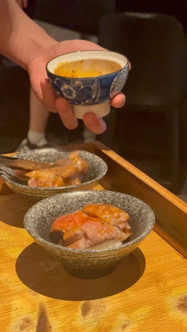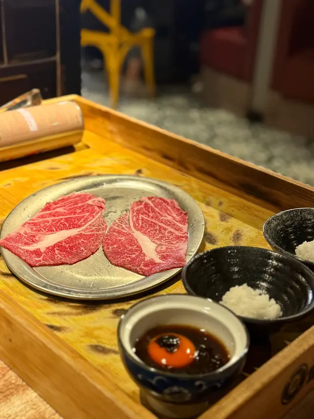 👅 原條手切牛舌($230)牛舌色澤新鮮粉嫩,職員仲會代勞幫手燒,燒得均勻啱啱好,燒完嘅牛舌肉質鮮嫩帶點彈性有嚼勁,配上餐廳自家製醬料(鹽漬昆布、尖椒芫荽,檸檬汁)就更有風味,個人認為鹽漬昆布同檸檬汁可以令牛舌更提鮮,尖椒芫荽嘅味道比較濃烈,有少少搶左牛舌嘅味道🍞 和牛多士($248)多士金黃香脆,中間夾住矜貴嘅鹿兒島和牛,和牛牛肉味濃又juicy,多士吸收左和牛嘅油脂香,加上有黑松露嘅他他醬,黑松露味道同和牛味道好夾之餘又唔會搶左對方嘅味道,香而不膩🐮 和牛壽喜燒($98)店員用火槍將和牛炙燒,然後蘸上黑松露生蛋黃醬,和牛油花均勻,蘸上生蛋黃醬一齊食就更滑溜,再配上一口白飯,正;順帶一提,如果唔食生蛋/黑松露可以提早同店員講🍚 紫菜月見飯($28)滿滿嘅紫菜絲,蛋選用九洲產熔岩蛋,蛋黃有住濃郁嘅橙紅色而且蛋香味濃又甘甜,連同牛肉汁一齊撈勻嚟食,燒肉必備🍝 火炙和牛拌冷麵($68)冷麵好豐富,有熟蛋、醃蘿蔔,青瓜絲同和牛;麵條好彈牙,冷麵汁用左青桔仔汁,味道酸酸味味,食落去清新又解膩;和牛肉味香濃,可以即食或者放上爐再燒一燒,如果整體份量多啲就更好🥔 日式薯仔沙律(卡樂B)($38)薯仔沙律份量唔少,入面有薯仔、青瓜,雞蛋同生洋蔥,沙律表面有卡樂B薯片碎同蟹子,好特別,雖則話係薯仔沙律,但其實生洋蔥嘅份量比較多,食落去有啲辣比較刺激味蕾🍹 驚安水果茶($38)水果茶有百香果,菠蘿,味道酸酸甜甜,好清新🥃 梅酒梳打($58)清爽嘅梳打水加上甘甜嘅梅酒,酒味唔濃容易入口🤩 而家只要系午市時段(中午12點-下午4點)或者宵夜時段(晚上9點半後)入座更加可以用驚安價(59折優惠)就食到咁高質嘅燒肉…查看更多