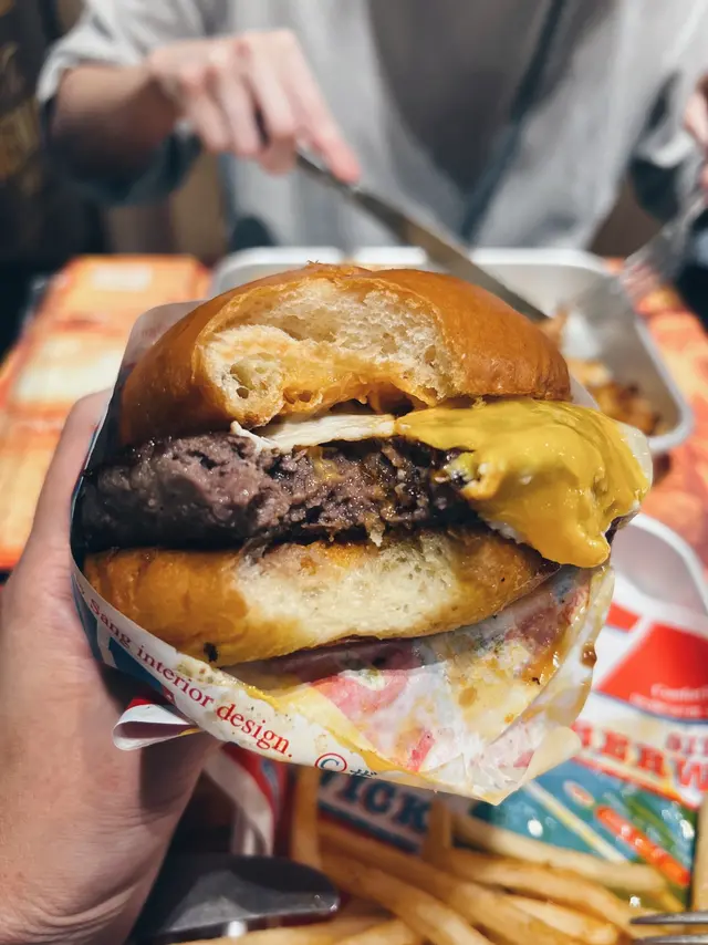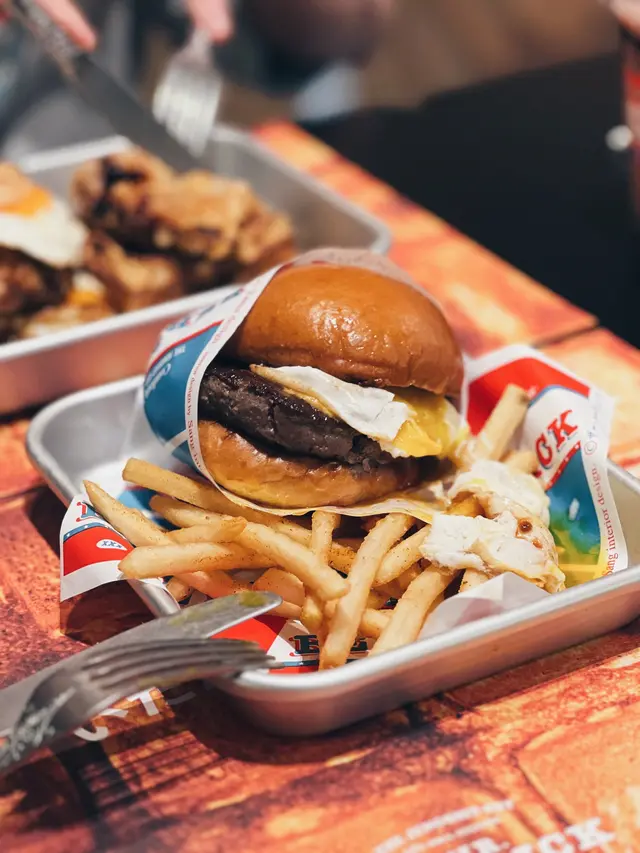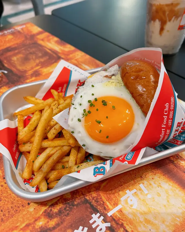 西環美式Comfort Food人氣小店No Milkshake No Life原來在不遠處開了姊妹店,就在水街金祥排骨麵對面一條不顯眼的小巷內,同樣是賣美式邪惡美食,當然也有招牌Milkshake!姊妹店的空間比NMNL大得多,很有慢活的的Weekend Vibes。禮拜日Tea Time來到也可以慢慢Chill!和牛芝士太陽蛋漢堡配薯條 Wagyu Cheese & Egg Burger w/ Fries $138和牛漢堡肉厚身Juicy,紮實而不鬆散。配料簡單不花巧,半溶芝士、焦糖洋蔥和畫龍點睛的House-made Sauce,還有鬆軟有彈性、富牛油香的麵包,Burger整體高質。幼身薯條加上Cajun辣粉,若份量多一點就更滿足。巴域爵士炸雞太陽蛋華夫鬆餅 Signature Fried Chicken & Egg Waffle $138作為人氣No. 1,期望當然特別高。除了大大隻太陽蛋鮮艷吸睛外,炸雞也是美式的大Size。外層包有一定厚度的炸漿皮,炸得卜卜脆,加上有糖漿的點綴,好邪惡。炸雞熱辣辣,肉質也不錯,尚算Juicy。Waffle比想像中薄身,略嫌少了點紮實的口感,但脆度不錯,配上流心蛋黃和糖漿,美味!花生醬朱古力奶昔 Peanut Butter Chocolate Milkshake $69作為NMNL的Milkshake Fans,來到姊妹店不能不來一杯。Peanut Butter Chocolate兩種味道都很突出,特別是花生醬的濃郁香味,還有花生顆粒碎,認真足料。整體以香港的美式Milkshake比較,Five Guys / Shake Shade的口感較濃稠、甜度較高,一人喝一杯會甜到膩。NMNL或這裡的招牌Milkshake沒有那麼Thick,但也是很濃稠,甜度較適合香港人的口味,味道選擇和層次也較多,但分店不多、不常有機會方便買到!…查看更多