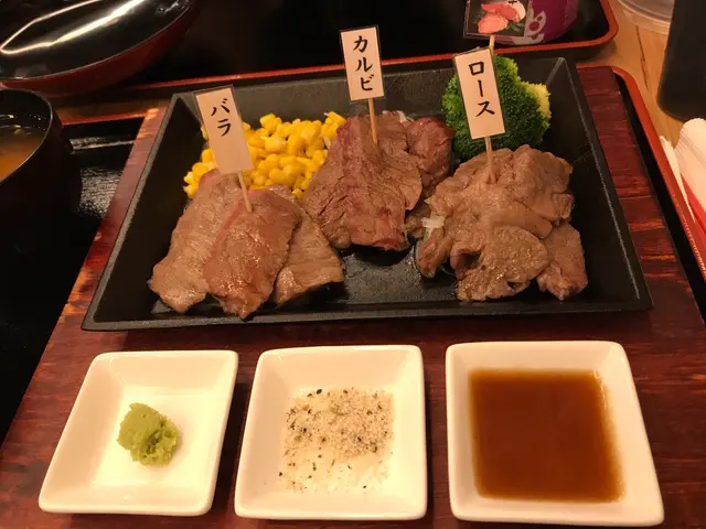 是日和男友到銅鑼灣行街,行到一家好似*和牛鐵板3種 ($298)由左至加是牛脊肉、牛五花和牛肩肉。三款和牛都有濃濃的牛味和脂肪味。個人最愛牛肩肉,又淋又JUICY;其次是牛脊肉,都是淋的,但淋得來有點咬口;牛五花太肥,所以不太愛。麵豉湯不會太咸有WASABI、繙油和岩鹽可以調味;不過個人覺得原汁原味最好食。*高級鐵板燒 ($189)男友點的還配上一個牛筋煮,真的煮得又淋又入味。他說因為上台時已經是半熟,所以不用燒得太耐。…查看更多