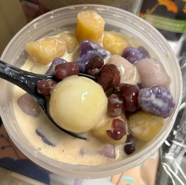 多芒楊枝甘露 $48(鮮芒果、西米、芒果汁、金柚、特調椰奶)芒果算甜,但不是食過最甜的。西米軟糯煙靭,可是食到中途有一大舊西米仍然互相黏着😅。甘柚放置於最頂,幫整個楊枝甘露加添酸味👍🏻,能夠托起芒果汁的甜。正常發揮吧,有點兒偏貴🫣超煙韌豆花 $42(豆花、珍珠、芋圓、小丸子、奶蓋)豆花完全不甜,有香濃豆味👍🏻。奶蓋偏甜,與豆花一起吃,剛好能中和甜味👌🏻。可惜奶蓋份量不夠,吃到底的時候沒有了奶蓋的陪襯,味道會變得單一。珍珠、芋圓、小丸子皆很軟熟🥰三色芋圓十分軟糯,連芋圓的中心也煮得很軟熟,很好吃😍😍😍和風白玉 $45(豆乳布丁、紅豆、特調椰奶、白玉、三色芋圓、黑糖)豆乳布丁不甜,有香濃豆味👍🏻。紅豆、黑糖、芋圓等皆能令豆乳變甜。白玉外表看似湯圓,可是內裏沒有餡料,幸好糯米煮得很軟熟。芋圓則與上一杯 “和風白玉” 一樣,很好吃。這杯的餡料於三杯當中相對最多、甜度適中。小編最愛這杯🥰最後讚一讚小店的包裝,無論包裝碗、蓋,還是塑膠袋,都很硬淨👍🏻👍🏻👍🏻。塑膠的碗和蓋不捨得就此丟棄,可以洗乾淨再重用🙌🏻…查看更多