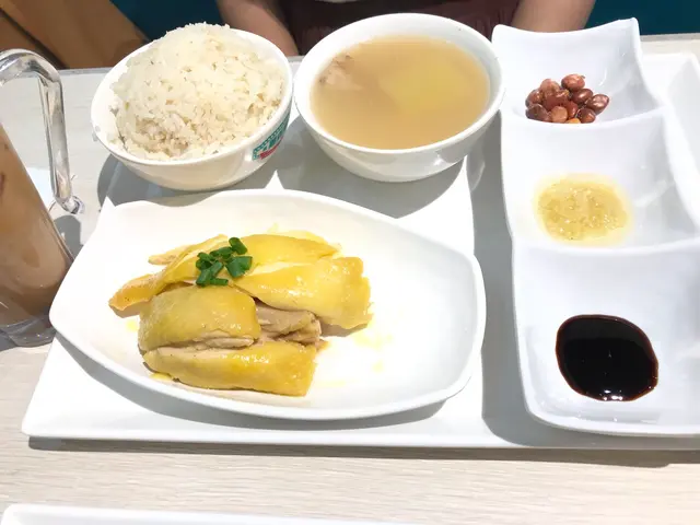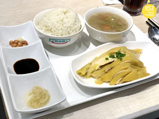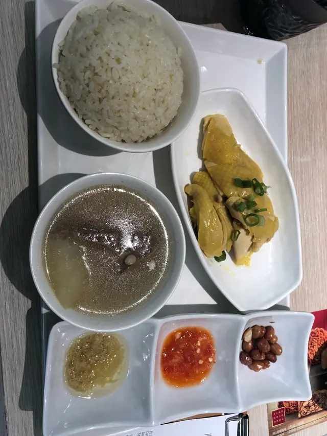 係正既!正宗新加坡式海南雞飯有嘅配料佢都有甜醬油、薑蓉、花生配雞肉另外油飯都好香