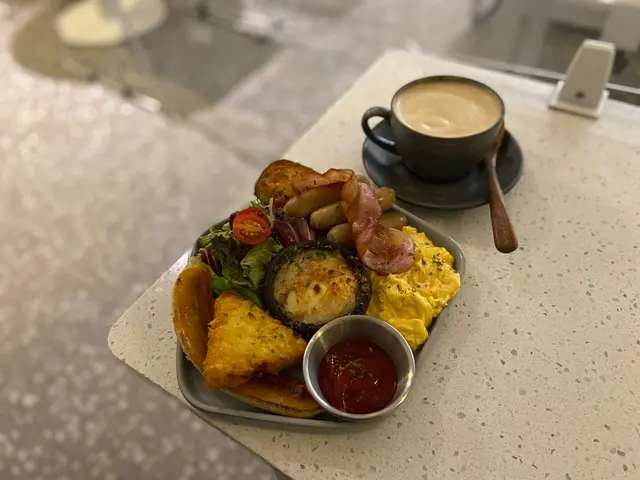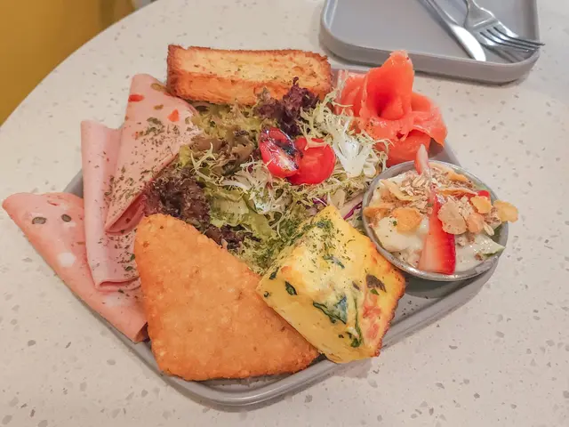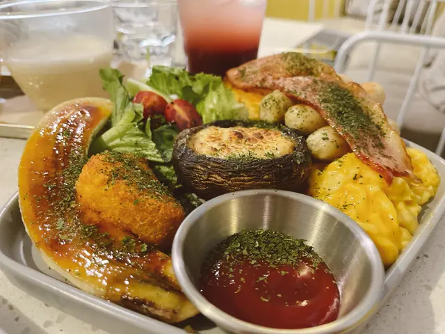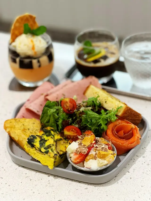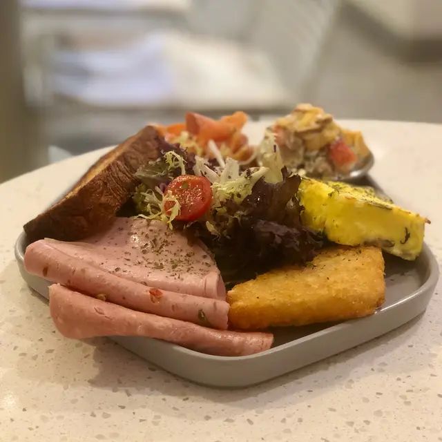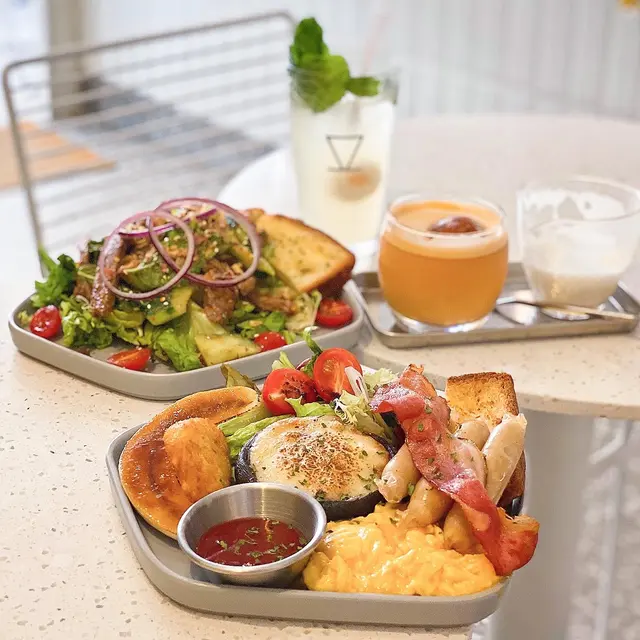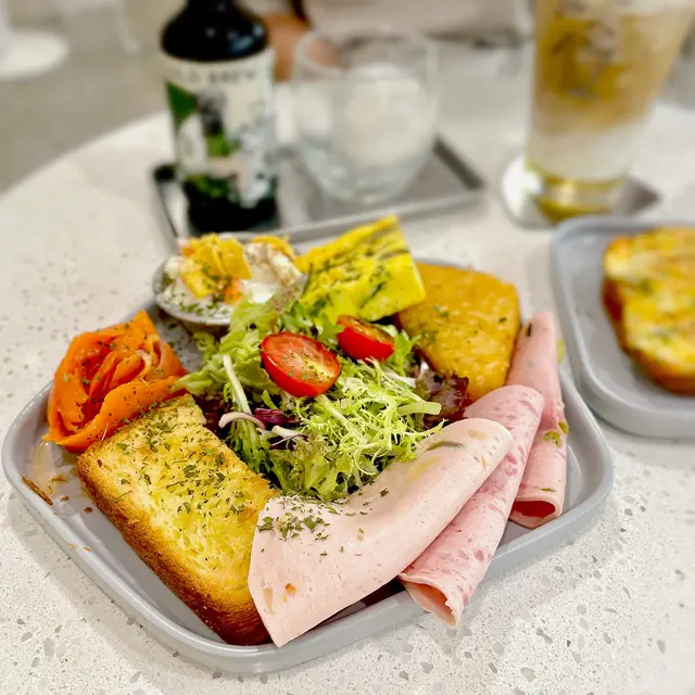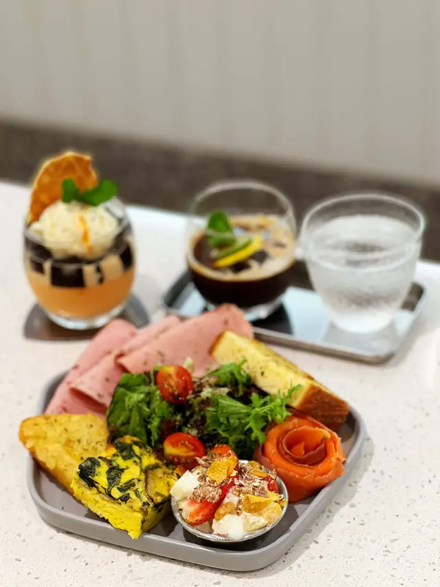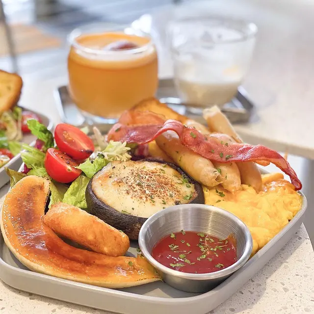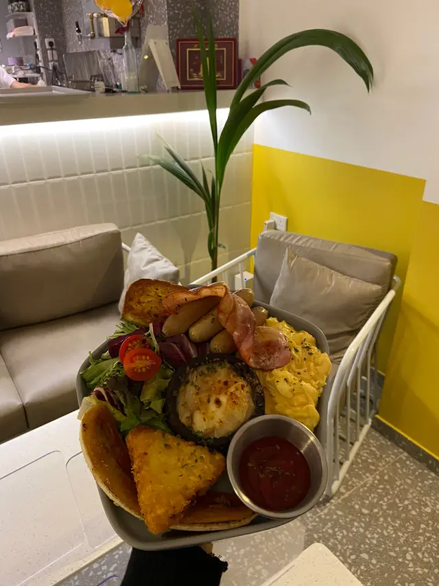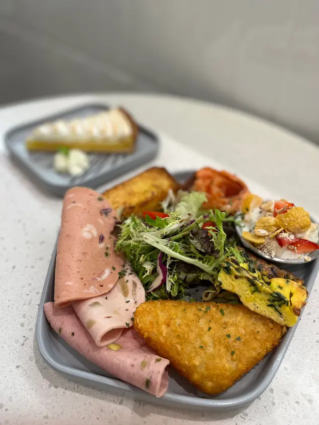 𝔹𝕠𝕠𝕜𝕞𝕒𝕣𝕜咗冚棒唥依間餐廳好耐,餐廳主打𝔽𝕦𝕤𝕚𝕠𝕟泰茶,裝修以明亮黃白色為主,啱晒打卡。.啱啱好全日早餐 $𝟙𝟚𝟠當日唔太肚餓,我哋就叫咗個𝔸𝕝𝕝 𝔻𝕒𝕪 𝔹𝕣𝕖𝕒𝕜𝕗𝕒𝕤𝕥 𝕊𝕙𝕒𝕣𝕖食,有少見嘅菠菜蛋餅、煙三文魚、薯餅、沙律🥗、火腿、蒜蓉包同乳酪,都幾豐富。.是日甜品 - 檸檬批另外👨🏽🦱就叫咗份檸檬批俾👩🏻試吓,餅底酥脆,檸檬🍋內餡酸酸甜甜,好開胃,再加上表面焗過嘅蛋白霜,整體都幾輕盈,好味。如果可以再加啲檸檬皮或者薄荷葉可能會更加多層次同解膩。.泰•椰奶紅茶冰 $𝟞𝟝餐廳將紅茶雪做一個冰球,當客人淋熱椰奶落去,冰球就會融化,變做椰奶冰,好𝕚𝕘-𝕒𝕓𝕝𝕖📸。味道都唔錯,椰奶好濃厚,同紅茶冰好夾,不過飲到最後個冰都未完全融化🫠,好啱夏天飲😂。.整體嚟講,食物質素都唔錯,款款都適合打卡😍,其他甜品同飲品都幾特別,不過主菜同小食選擇都較少,除咗𝔸𝕝𝕝 𝔻𝕒𝕪 𝕓𝕣𝕖𝕒𝕜𝕗𝕒𝕤𝕥,另外仲有飯堡、意粉,如果會定期更新吓餐牌對我哋依啲貪新鮮嘅客人會更吸引😝。…查看更多