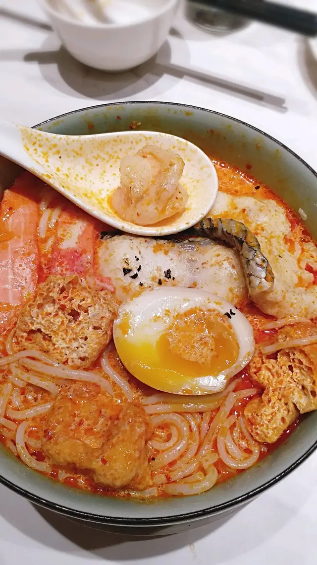 🇸🇬🥢🥣特色新加坡x中菜▫️免茶錢▫️食物份量有大中小選擇☑️餐前小食-雲耳 -$15一坐低就送上餐前小食,雲耳都算大碟,酸酸辣辣幾開胃,呢個份量$15算幾抵。☑️菜香鐵板豆腐(細)-$108呢個收費較貴,豆腐吾算好大件,但入面真係好滑,甘大件炸完都冇爛,真係功夫菜。個調味好好味,下面有蛋,上面有大量肉碎,口感豐富。☑️喇沙湯海鮮米線 -$83喇沙嘅湯底顏色較紅,有d油但唔會好辣,椰汁味都香,湯底惹味,米線軟硬度剛好。配料都唔少,有豆卜、半隻雞蛋、魚片、蝦、蟹柳。蝦都幾彈牙。☑️蝦味魚子蝦球炒飯(細)-$83細嘅炒飯大約可以裝到四碗,都唔算好細,炒得幾有鑊氣,飯粒粒分明,有唔少魚子增加口感。Menu話原來米飯有用蝦湯煮過,啖啖蝦味,齒頰留香,配埋蛋同埋蔥花,味道一流。☑️漁香茄子煲 -$88茄子用煲上超熱咋咋聲,茄子用油泡過幾入味,茄子肉淋只是比較油膩。另有大量肉碎,調味微辣惹味。☑️金銀蛋浸時蔬-$88呢個幾清新,上湯好飲唔會重味精,唔會好鹹。除咗菜,仲有唔少肉碎同埋皮蛋鹹蛋,但如果可以再多啲菜就好啦。☑️脆皮蝦醬雞中翅(細)-$103叫細份但都有8隻,好彩我地有4個人,2人食就太多了。雞翼大隻炸得好香脆,小心熱親,肉嫩,好食的,但唔係好食到有蝦醬味。…查看更多