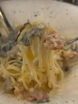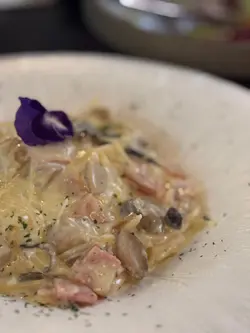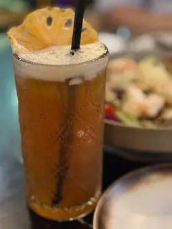 喺九龍灣有間裝修風格好有特色、打卡一流嘅西餐廳,人氣爆棚,建議訂位。餐廳提供多款食物選擇,如果天氣溫度啱啱好,仲可以揀坐室外,更加有氣氛,適合各種聚會。.🌟四重風味德國鹹豬手餐廳提供六種醬汁選擇,豬手外皮烤到香脆,肉質軟嫩唔乾柴。開心果蜜糖芥末醬好特別,果仁香同微甜芥末好夾。香蒜黑椒,辛香夠味,令件豬手食落更加惹味,整體風味有層次。.🌟日本柚子鮮蝦沙律口感十分清爽。鮮蝦彈牙,沙律菜新鮮爽脆。柚子的清香與微酸,恰到好處咁帶出鮮甜,醬汁開胃。.🌟經典卡邦尼意粉卡邦尼意粉夠晒經典。意粉煮得彈牙,掛滿濃郁嘅蛋黃醬汁,鹹香嘅煙肉同帕瑪森芝士融合得啱啱好,香而不膩。.🌟菠蘿荔枝烏龍茶入口清甜爽口。菠蘿嘅果香同荔枝嘅甜潤配搭得啱啱好,烏龍茶底溫潤解膩,整體風味平衡,同時解咗豬手骨膠原嘅膩感。…查看更多