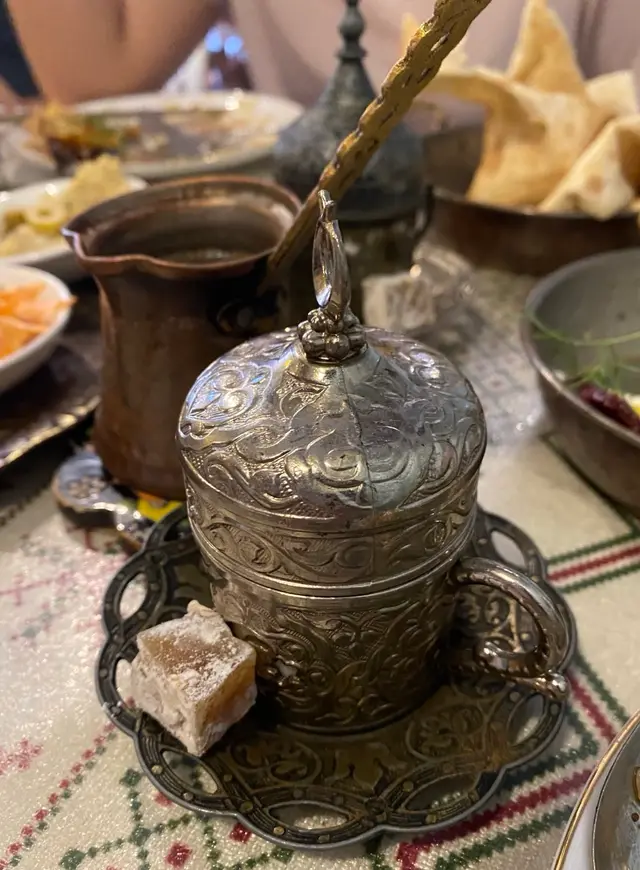 去馬灣探訪朋友新居,佢就帶咗我哋去附近村屋嘅隱世小店食土耳其菜🤩 家庭式佈置,加上有貓店長,簡直係打咭之選😻 第一次食土耳其餐,本身亦冇咩認識,結果好有驚喜🤗☕️#土耳其咖啡:聽講係喺啲熱沙上面煮嘅咖啡。細細杯,味道好濃郁,幾好飲;仲有一杯可以refill。唔記得搞勻,個底有好多好似沙嘅咖啡粉,所以最後濃到refill完都要再加水😹 送嘅一粒糖對我嚟講就冇乜特別🫡🫡🐔#土耳其烤雞飯:好好食嘅烤雞😋 我哋叫咗1/2隻雞,舊雞都幾多肉,醃得幾好味🤤 加埋啲醬料食就一流~~🥗#土耳其全日早餐:係一盤大沙律+幾盤小食(目測同味道似係:芝士、豆泥、蘿蔔蓉+蜜糖醬)+腸仔炒蛋(?)+烤餅嘅組合。將所有嘢夾晒落舊烤餅度,再好似食韓式烤肉咁隊落口,感覺好正同好好食🤭🥐#伊斯坦漢堡:轉咗牛角包,味道都唔錯,可以一試。🍨#土耳其開心果酥餅:無論係雪糕定係酥餅,都係好甜🥲🙈後尾先發覺原來唔記得叫雞肉烤餅😹😹😹 好彩份量都算大份,大家都夠食😆…查看更多