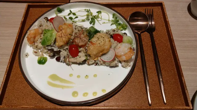 2022.10.11 lunch 呢一日,放飯,一路行一路諗食乜⋯⋯同女友講,不如再食茶木!見未有人等位就碌咗入去😂 今次好易揀,因上次食緊已經諗緊下次食咩😁 女友嘅墨魚鮮蝦茶香藜麥飯先到,賣相真係好靚😍 未食都覺得好味,味道都真好好,啲蝦,墨魚丸都好味,個藜麥飯當然都好味啦,但唔係好夠熱🤨 個茶香三文魚湯漬飯嘅賣想都係好靚😍 三文魚煎過,又大份,抵食!本身就麻麻哋食湯漬飯,但都試吓,所以落好少咋,都幾特別嘅,不過我都係鐘意就咁食😅 今次我揀另一款叫四季青萱茶)睇番餐牌,原來都係烏龍嘅一種),女友都係鐘情於高山金萱烏龍 ,我個青萱茶就淡左啲,下次試麥香小葉紅茶😌…查看更多