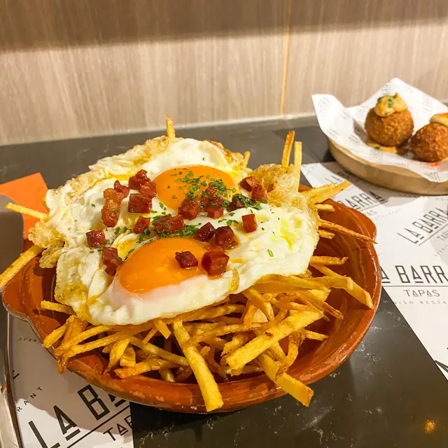 平時想搵特別啲嘅西餐廳都發現好多喺港島,但今次見到有人介紹呢間西班牙餐廳喺九龍區,而且都幾吸引就bookmark咗~食完之後都覺得幾唔錯,感覺係幾正宗嘅西班牙菜🤤•🥢 松露蘑菇可樂餅 $18🥢 蟹肉可樂餅 $18上菜嘅時候店員提醒我哋食松露蘑菇先再食蟹肉,可樂餅細細粒,外脆內軟,好啱配酒🤩 松露蘑菇可樂餅係用咗黑松露醬、牛肝菌同花菇(都係返佢哋ig先知🤣),好濃蘑菇味,食落有好滿足嘅感覺😌 而蟹肉可樂餅就更加creamy,中間有一絲絲蟹肉,係混合忌廉蟹肉同蟹籽沙律嘅味道~•🥢 壞蛋薯條 $88呢個係幼身薯條配兩隻少少燶嘅太陽蛋同煙肉碎,薯條嘅薯仔味好突出,睇返ig介紹原來有專登揀濃味而澱粉含量高嘅荷蘭薯仔~薯仔切到好幼,炸到好脆,就咁食會有啲乾,但撈埋蛋汁就好唔同,外面少少淋但入面好脆!係好好嘅配酒小食,但晚餐就有啲唔夾🙈•🥢 西班牙海鮮飯 $248西班牙海鮮飯可以話係必食!見到差唔多枱枱都有叫,去過西班牙嘅朋友仲話食得返西班牙食到嘅味道!海鮮有青口、蝦同蜆,每款都有4-5隻,每款都幾新鮮,青口同蜆都唔煮到乾晒,仲保留到啲肉汁~ 個盤好大,但飯係鋪咗薄一層,份量唔會太多,啱2-3個人食再加啲其他dishes,飯粒係吸滿咗龍蝦湯同海鮮精華,所以好入味!•🥢 Sangria $68差唔多每次食西班牙菜都會叫嘅飲品,加咗唔少生果片/果汁,紅酒嘅酒味唔會太重,酸酸甜甜超級開胃!…查看更多
