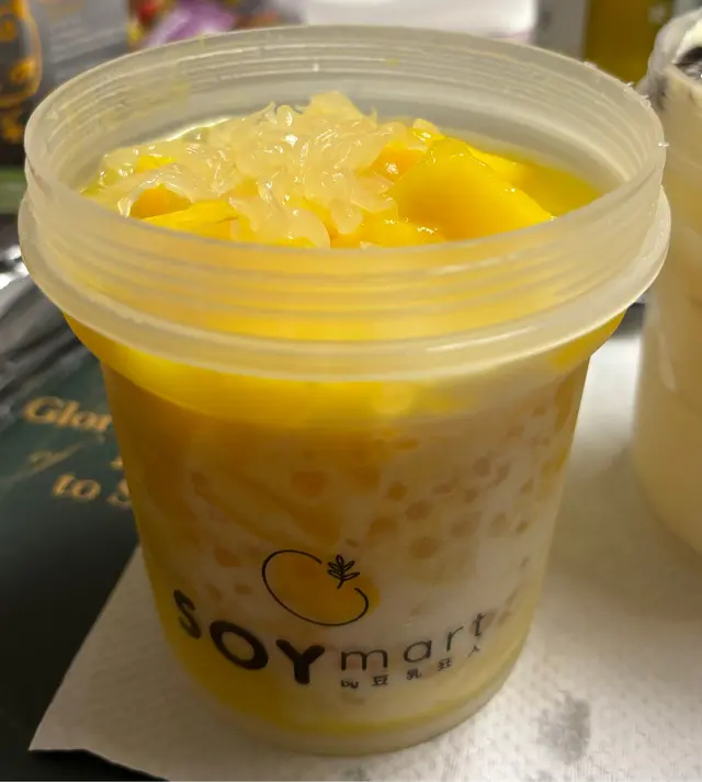🙋🏻♂️餓底探員去咗將軍澳調查呢間甜品店,餐廳設計成一個卡通化嘅生產廠房,睇住卡通造型嘅黃豆喺生產線上,演變出多款豆乳甜品,非常有趣,除咗豆乳系列,仲有鮮芋泥,多芒,桃膠等系列甜品,選擇眾多🥛鮮芋泥豆乳 $32🙋🏻♂️表示用8.6嘅豆乳配上鮮芋泥,飲落豆乳味超濃郁,芋泥口感濃厚香軟,味道鮮香🍬黑糖3.6牛乳桃膠 $36 🙋🏻♂️表示個桃膠份量超多又大粒,口感煙靭軟滑,配上奶味香濃嘅3.6牛乳同特調椰奶,加上香甜嘅黑糖,味道好正🥭多芒楊枝甘露 $48🙋🏻♂️表示個楊枝甘露入面有大大粒西米,金柚,超多芒果肉同芒果汁,配上香濃嘅特調椰奶,芒果味超濃郁又鮮甜,加上西米同金柚,層次感滿滿📈吃貨指數😋好味度 8.5/10🔙返啅度 8.5/10…查看更多
