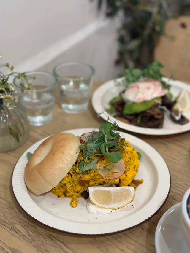 The hearty all-day breakfast is perfectly rounded out with fresh, juicy blueberries. Very abundant and complete to start the day. The onion bagel with black truffle scrambled eggs.The friendly staff makes the experience even more delightful.📍1 Star Street, Wan Chai | Latter Cafe…查看更多