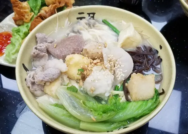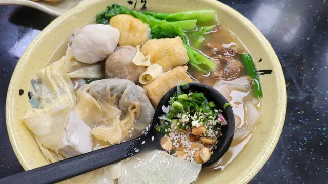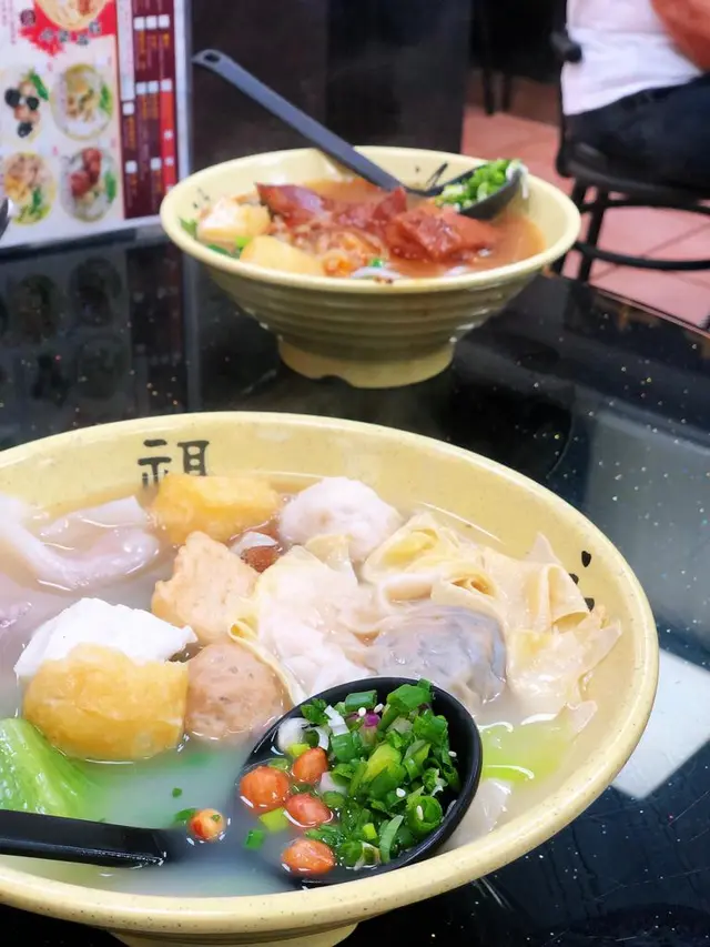星期日行開高登買完電腦去醫肚,經過維記排晒隊,行返轉頭見有新店開左,不過無咩人,都驚中伏。見店面幾乾淨,又見有自家製瀨粉,一於入去試一試。三個人叫左碗招牌的大大碗鮮製瀨粉,有13種配菜,真係幾大配,如果女士們真係可以兩個人share一碗來食。我就叫左碗肥牛魚片頭瀨粉。加一碟炸雲吞。本身唔多鍾意食瀨粉的我都覺得呢碗瀨粉唔錯,比一般瀨粉粗,似烏冬多過似瀨粉。碗招牌粉的料都好足,正!肥牛魚片頭唔錯。炸雲吞d 蝦都幾大隻,$28 有6隻好味。值得大家去幫襯。…查看更多