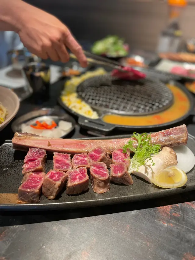 °•大牛骨$360這道牛骨超級juicy好吃,可以吃到牛肉的鮮味濃郁,入口滋味豐富,吃完想再encore‼️°•花卷五花肉(全份)$268擺盤美美的,油脂感滿滿的五花肉,口感豐富,五花肉保持了豐富的油脂和口感,必點😋°•蘋果梨汁雞$88雞肉鮮嫩多汁,蘋果和梨的酸甜味與雞肉配合得宜,燒完後吃起來很清新😆°•辣炒年糕(M)$98年糕經過炒煮,口感彈牙,辣椒的辣味與年糕的甜味相互配合,還有魚糕口感qq彈彈吃上隱喇~°•荔枝梳打$32梳打清涼解渴,還有一顆荔枝,很鮮甜°•柑橘梳打$32帶柑橘的酸甜味的氣泡飲料,比較開胃特別一讚這裡的店員差不多幫忙燒了大部分的肉,服務一級棒💯…查看更多