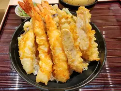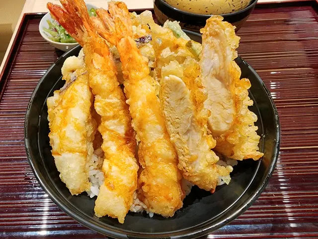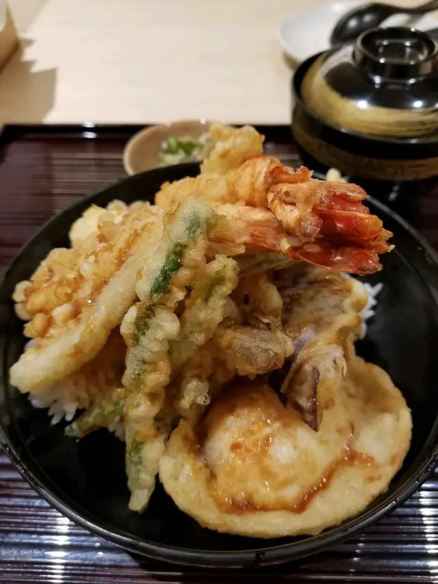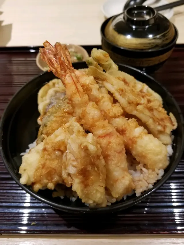 好特別,D炸物會當住客人面前炸,好新鮮🤣🤣個爐仲要好似粒金蛋咁😝佢既炸漿都唔厚,唔油❤️❤️🥢天丼定食 $118虎蝦(2隻)、雞胸、北海道舞茸菇、南瓜、法國邊豆、日本雞蛋每個定食都會有一個味噌湯同一個小配菜(秋葵)。炸虎蝦肉質結實彈牙,食落啖啖肉,好滿足🤤🤤炸雞胸熱辣辣好脆🐣炸北海道舞茸菇,好香口,菇味重🥰炸南瓜香甜,炸完南瓜肉唔硬👍🏻炸蛋,炸完係流心,蛋醬撈埋落個飯食,好正❤️法國邊豆比較幼,食唔到有咩特別😝😝🥢特選天丼定食 $178虎蝦(3隻)、鱚魚、海鰻^半條、鱿魚、北海道舞茸菇、南瓜、法國邊豆、日本雞蛋每個定食都會有一個味噌湯同一個小配菜(秋葵)。炸虎蝦肉質結實彈牙,食落啖啖肉,好滿足🤤🤤炸鱚魚鮮甜唔腥😝炸海鰻冇骨嫩滑,唔腥,好正❤️炸鱿魚彈牙爽口🤤🤤評分:味道:⭐️⭐️⭐️⭐️環境:⭐️⭐️⭐⭐️整體:⭐️⭐️⭐️⭐️…查看更多