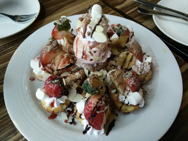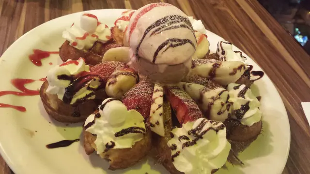 新分店推出的新menu~Cafe雖然地方不大,裝修卻很有心思,環境幾舒服。京都焙茶鮮奶 ($36 regular; $39 grande)經過烘焙的茶葉特別甘香,未飲已經聞到陣陣茶香,一飲 "哇,真係超濃郁!"溝揾鮮奶份外香滑,真是好好飲!不過記住襯熱飲喔,凍咗焙茶味會冇咁香~珍寶龍蝦仔牛角包 ($98)外型好吸引又大份,牛角包外層呈金黃色,口感尚算鬆軟,夾着滿滿的餡料及生菜。有點可惜的是餡料落得太多千島醬,蓋過了龍蝦仔的鮮味,加上龍蝦仔切得偏細粒,所以沒什麼嚼口。如果醬汁味道淡一點,龍蝦仔保留返大舊一點就好喇~伴碟的粗薯條又脆又不油,好有薯味,食得出是用真材實料薯仔製成,並非食緊麵粉; 灑上鹽及香料,真是超好食!Fish n Chips ($88)好有水準的炸魚薯條。外型雖然不是英國typical食開一大舊的那種,但味道口感絕對有得揮。外皮炸得非常鬆脆,一點都不油膩,魚肉好嫩滑結實,不會一咬就散,味道亦醃得適中,好好食。而粗薯條當然是冇得彈啦~澳式和牛漢堡 ($112)130g厚切juicy和牛,肉質厚實有嚼勁,配上煙肉蔬菜及流心太陽蛋,多料到一啖都咬唔哂。加埋半溶芝士及茄汁,好惹味!太極窩夫 ($88)窩夫是我喜歡的liege waffle質地,外層較Q,內裏鬆軟厚實,比較有嚼勁,跟外層脆口的brussel waffle不同。配料方面有香蕉士多啤梨粒、杏仁片、忌廉、士多啤梨朱古力醬及兩球雪糕 (+$10 多一球),非常豐富。唯一美中不足的是whipping cream不是手打,而是即食的那種,所以會好易溶及缺乏了幼滑的口感。…查看更多