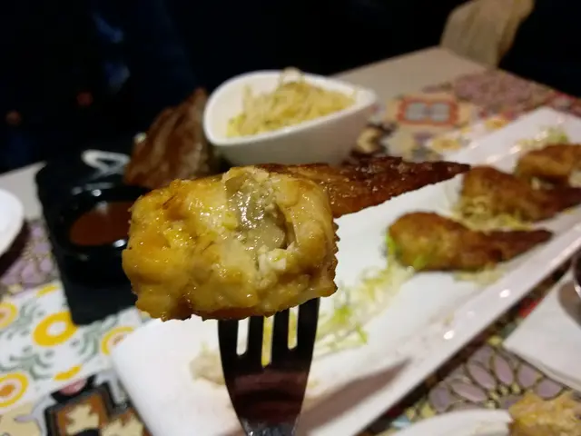 店名很特別,提醒我們凡事別忘初心~裝潢很有老香港的味道,桌面嵌入懷舊風的瓷磚,頗為特別最喜歡奇尊炸雞中翼($68),這其實是忌廉蘑菇芝士釀雞翼,上枱時已覺得吸引,每隻雞翼都呈金黃色,脹卜卜好飽滿。急不及待馬上咬了一口,內裏雞肉嫩滑多汁,芝味無窮🤤焗麵包磚配雪糕($58)是小時候最喜歡的甜品,但已經一段時間沒吃了。這裏的麵包磚上有朱古力和呍呢拿兩球雪糕,最欣賞的是附有煉奶、朱古力醬和糖漿,按自己喜好醮不同的醬香煎豬扒拼司華力腸配燒汁意粉($49)突然想吃司華力腸,所以點了這個餐。豬扒頗鬆軟,不會鞋口難咬,意粉的份量也足夠。炸薯條($48)端上來的時候發現是薯角,更合朋友口味,因她常說薯角相對健康。薯角很香,內裏粉軟,附有茄汁和黑松露醬任君選擇。跟餐還有餐包、忌廉湯和凍檸水。…查看更多