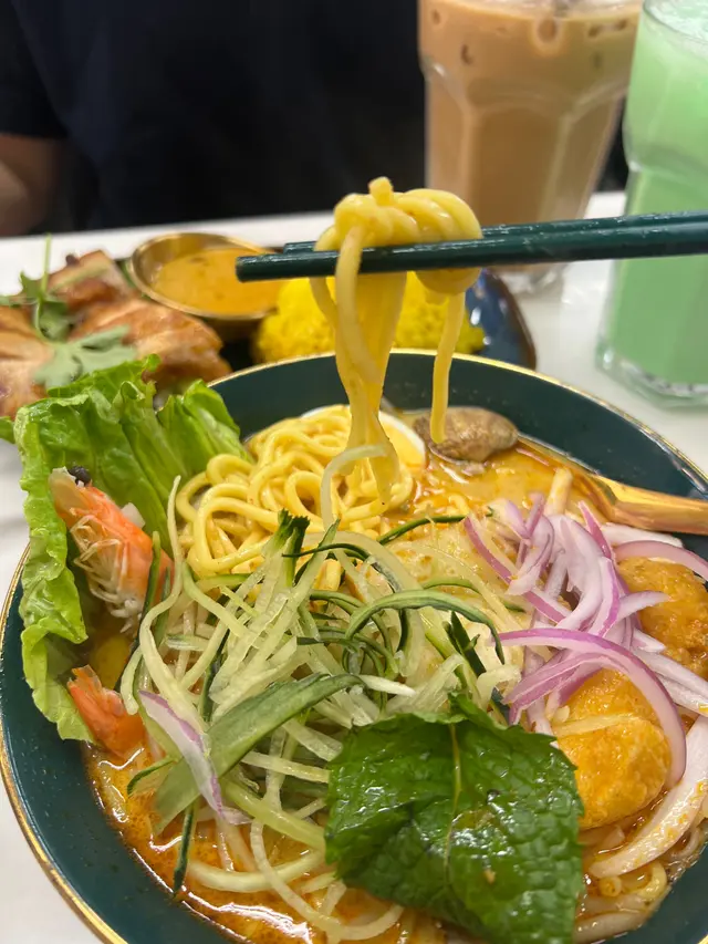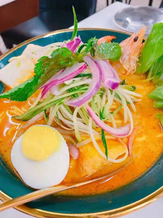呢間麥金.麥金之前已經食過一次,今次再黎試下唔同既野食,冬天嗌翻個肉骨茶,飲完暖笠笠好正😌飲完店員仲會好主動問你需唔需要加~ 1️⃣馬來辣椒板面($58) 拌勻辣椒粉、花生粒、花生碎、江魚仔、肉碎、豬油渣,仲有重點溫泉蛋😍麵係偏幼身白麵,份量幾多。 2️⃣娘惹叻沙($68) 叻沙湯底濃厚,有蝦、魚片、豆卜、蛋,同埋好多好多既洋蔥絲!麵底可以自選,可以揀摻摻! 3️⃣一字骨($62) 肉骨茶藥材味好香,熱住上,冬天飲啱曬!最正係可以任添😌 4️⃣秘醬玻璃魷魚通菜($78) 馬拉菜一定要嗌炒通菜吧😗帶輕微辣勁,加上魷魚,好食! 5️⃣泰式炸蝦餅($48) 炸蝦餅有四件,配上泰式甜辣醬🌶️ 6️⃣香蕉鮮牛奶($34) 淡淡既香蕉味,飲得出唔係香精味,飲落去係舒服既香蕉奶味~ 7️⃣椰汁斑蘭冰($28) 清涼可口🍃好解渴! …查看更多