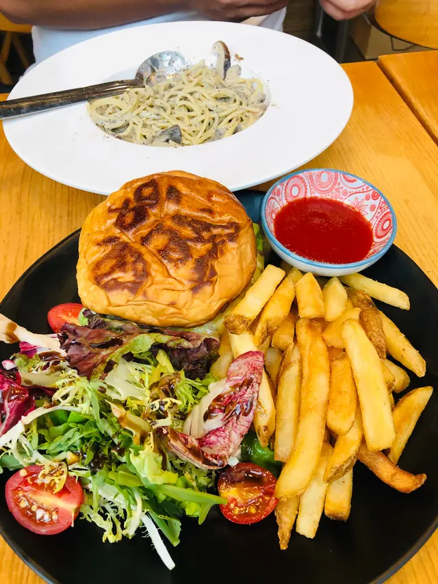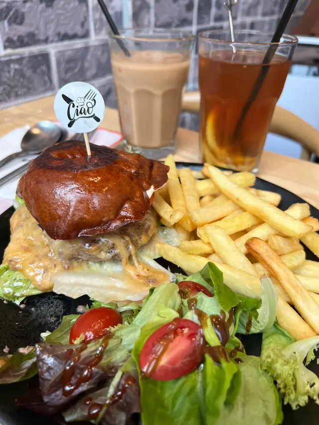 真心 好食!😋😋💛 ng_angelina等級32021-08-13288 瀏覽 關注 本日心情:想食西餐,漢堡包🍔好啦,就揾下附近有無心水。睇相見Ciao啲食物賣相唔錯,就黎試下啦,喂,好好味喎!1) 🍝 黑松露雜菌意粉 lunch set $68- 是日餐湯係🍅蕃茄雜菜湯 (湯用杯裝住),食得出係自家製,有粒粒蕃茄茸同紅腰豆,飲落無味精,唔錯 - 個意粉真係好出色!一放低已經好香gas味(黑松露味),而且好足料有好多野菌同多白汁,食到最尾,碟底都仲有好多野菌同汁撈意粉,正呀!﹙有陣時係出面食呢一味菜,都未食到最後已經無晒d菇菇同白汁送口...你懂的)2) 🍔🍟 安格斯牛肉漢堡 lunch set $108- 兩個字,出色👍🏻- 麵包有預先煎過,外脆內軟,出色,好食。- 入面個餡,安格斯牛肉漢堡扒好厚,似係用免治牛肉自己煎出黎成形嗰種,幾好 (btw, 中間仲少少紅紅地,怕生既可以叫佢煎熟d,我就鐘意medium啦),配蛋白醬(?)同蕃茄生菜芝士,整體好好味呀!- 沙律菜配黑醋/紅酒醋,good👍🏻- 🍟薯條夠粗身亦夠脆,新鮮炸起,正正子- 野飲就普通啦,正正常常總結: 份量大,我地食到好飽呀😂但又忍唔住清晒成碟野,覺得唔清晒佢會對唔住咁好食既食物。(難食既話真係會食一半而唔想嘥咗自己d quota)今次真係喜出望外😋😋,估唔到石門有呢d高質西式cafe,lunch黎講,價錢中等,唔算話好好平,但食物質素住對對得起呢個價錢,推薦!💛💛💛💛💛我一定會再encore試埋其他野食架!食到高質餐廳真係會開心一日。老細加油,用心煮,食客係會食得出☺️☺️…查看更多以上食評乃用戶個人意見 , 並不代表OpenRice之觀點。1分享真心 好食!😋😋💛 Ciao https://s.openrice.com/QrbT0zzWFW0檢舉 張貼 評分5味道4環境5服務5衛生4抵食推介美食黑松露雜菌意粉$68安格斯牛肉漢堡$108安格斯牛肉漢堡$108用餐日期2021-08-13用餐途徑堂食人均消費$90 (午餐)