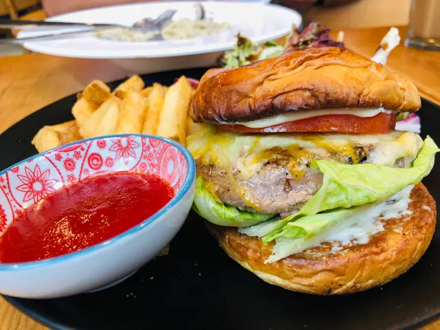 *必食*安格斯牛肉漢堡 kiki2387等級42024-06-132K 瀏覽 關注 安格斯牛肉漢堡麵包皮用牛油烘香, 配上juicy多汁的牛肉,再加上芝士蕃茄和生菜, 非常滋味!芝士煙肉焗薯皮吃的時候很香脆, 但不知為何比較有油膩感, 或許薯皮是經過油炸再加芝士用焗爐再焗, 好吃但做不到乾身的感覺, 比較滯熱鮮奶咖啡味道一般, 不過不失最出色還是安格斯牛肉漢堡…查看更多以上食評乃用戶個人意見 , 並不代表OpenRice之觀點。讚好分享*必食*安格斯牛肉漢堡 Ciao https://s.openrice.com/QrbT052DK00檢舉 張貼 評分4味道5環境5服務5衛生4抵食推介美食安格斯牛肉漢堡安格斯牛肉漢堡芝士煙肉焗薯皮用餐途徑堂食