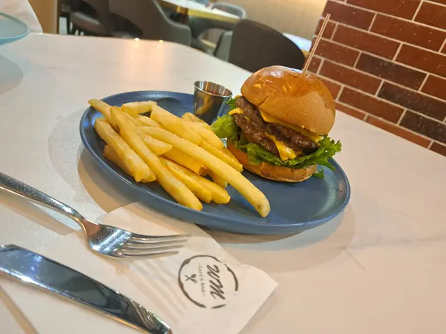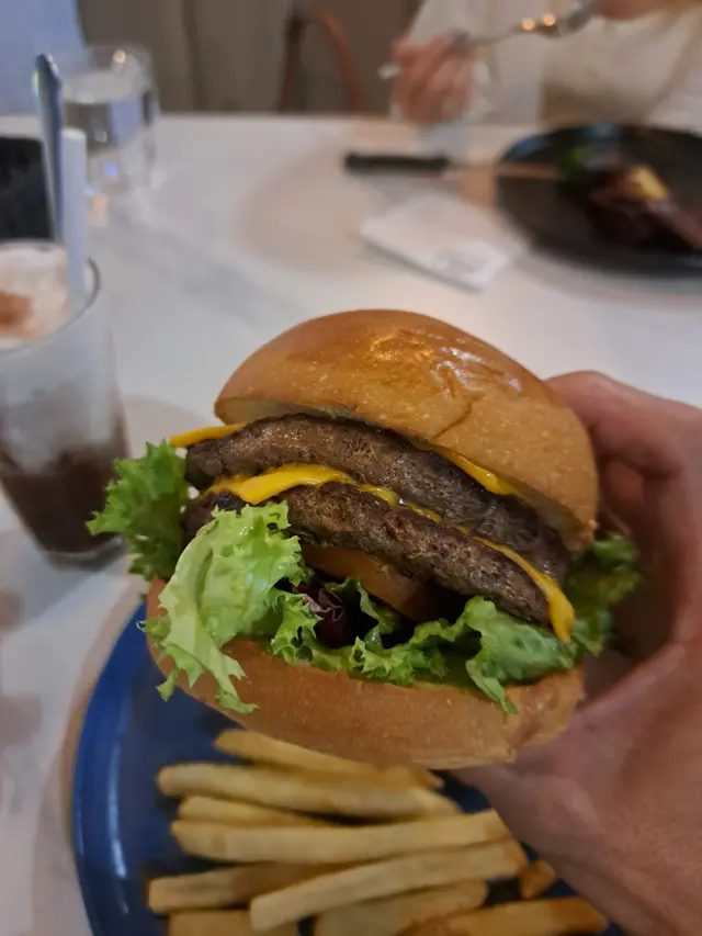 有次搭巴士經過見到商場裝修得好靚好日式feel,今次就特登同男友過黎睇下有咩食,發現一樓有間西餐好似幾好,門口甜品櫃既巴斯克蛋糕好吸引🤩一於入去試下🤭安格斯牛肉芝士漢堡配薯條🍔🍟上到枱見到好大個漢堡😂入面又多芝士而且牛肉有兩層🤩一啲都唔孤寒👍🏻咬落去仲有肉汁標出黎🤤🤤薯條亦炸得好香脆唔會油淋淋👍🏻上到枱熱辣辣🤤🤤美國安格斯封門柳伴燒汁🐃封門柳呢個部位賣點係肉味濃郁有咬口,但缺點就係相當多筋😳不過見到餐廳處理方法係已經切開一舊舊,一黎方便控制生熟程度,二黎可以避開筋位,做法相當聰明而且都好方便食客👍🏻果然係牛味香濃有質感,仲完全食唔到筋😋封門柳下面仲有薯蓉墊底,索左啲牛肉味又配埋燒汁非常之正🤤🤤巴斯克芝士蛋糕🍰芝士味香濃,蛋糕食落有質感😋我都忍唔住差唔多食曬成個,淨係分左啖俾男友🤭🤭餐廳員工都非常貼心🫶🏻見出面落雨有啲凍,會主動詢問客人需唔需要暖水,收碟亦好及時,值得一讚👍🏻👍🏻🤩 推薦指數:9 / 10📍 餐廳資料:WM Café & Bar (啟岸) (土瓜灣)土瓜灣馬頭圍道63號啟岸1樓13號舖☆.。.:*・°☆.。.:*・°☆.。.:*・°☆.。.:*喜歡我的食評請Like & Follow🫶🏻 @umi.bengal.foodie#foodie #foodies #foodiegram #foodielife #foodiehk #hkfood #hkfoodie #hkrestaurant #香港美食 #土瓜灣美食 #西餐 #封門柳 #漢堡 #薯條 #WMcafe …查看更多