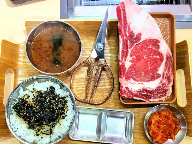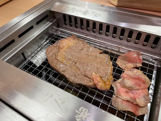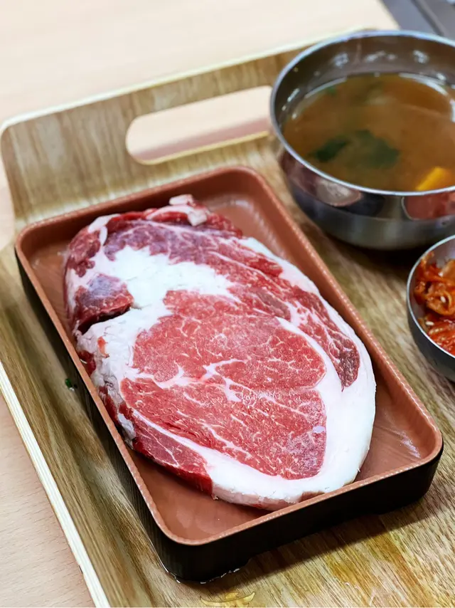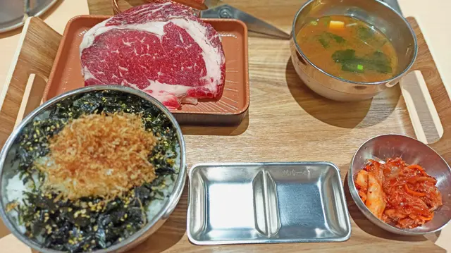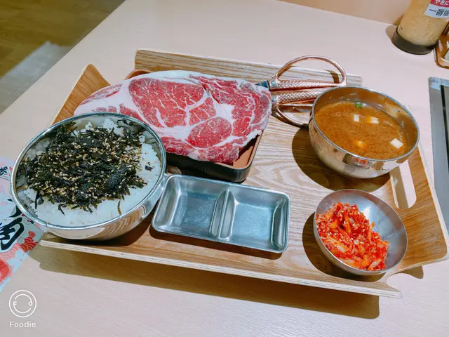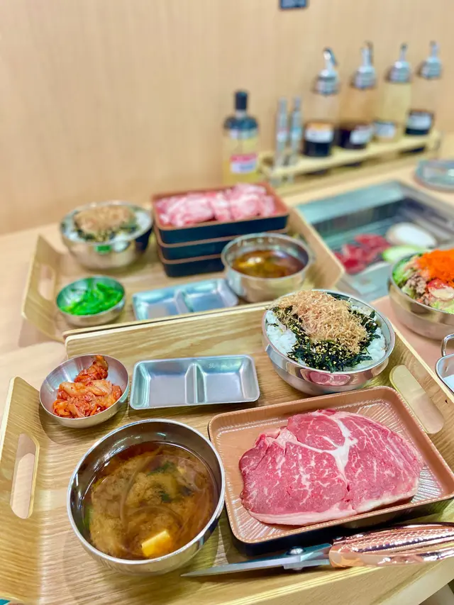 约了外號"燒肉魔王"食友到這日式燒肉食肆探店,到達門外先用food gulu取等座位票,侍應很快安排了座位,點菜就用二維碼,方便快捷👍🏼多款牛,豬,雞肉套餐供選擇,套餐包括白飯,麵豉湯,泡菜或前菜,我們决定分亨三個牛肉套餐 😂安格斯肉眼套餐(150g),一大塊肉眼扒, 厚薄適中,方便燒烤,原件放在烤爐上烘至七八成熟,再剪细件,入口更有味感,伴以熱米飯,肉香更顯😋牛小排套餐(200g), 小排肉薄條切成小件狀,易熟得多,高火快烤,入口油脂味濃,又把米飯升级至紫菜飯益加芳香😋骨付牛肋肉套餐,五件帶骨牛肋肉,微帶脂肪,入口有嚼勁😋决定追加牛舌芯(散點),切成長方條狀牛舌芯,入口軟绵嫩爽😋好記憶的一次"燒肉一餐"👏👏…查看更多