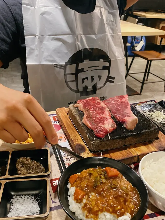位於中環黃金地段都有如此超值嘅石燒餐廳所以套餐已包肉類、白飯、任飲靚湯、任食沙律A5牛肩胛 (150g) 配咖喱飯 $178男朋友叫左個A5牛嘅套餐,本身咖哩飯要加錢,但呢一個套餐就唔洗。牛肩胛已經切好一片片上枱,想食幾熟隨個人控制,加埋咖哩飯,天作之合。安格斯西冷 (200g) 配白飯 $105西冷雖然價錢平啲,但係唔代表質素差,大大塊西冷,味道方面牛味好濃烈,餐廳呢個價錢絕對抵食!每一個餐都係石板燒,石板燒食耐左會凍,店員好細心咁會留意,如果唔夠熱,可以換一塊新石板。是日靚湯係椰子豬肉湯,飲落唔似味精湯,好好飲。律吧真係值得一提,雖然只有幾款,但好岩我哋兩個口味,加上有溫泉蛋提供,值得一讚。四季春 $10跟餐飲品都係半價,清清地,唔會好澀口。雲頂紅茶 $12雲頂姐係奶蓋,超邪惡。孜然風味薯條 $10套餐可以加配小食,我地叫左入薯條,份量唔算太多,不過有好幾款味道選擇都唔錯。整體黎講係中環呢個黃金地段呢個價錢絕對超值,如果細食啲嘅朋友,可以揀100g肉嘅套餐,價錢好似幾十蚊就落樓,勁抵!…查看更多