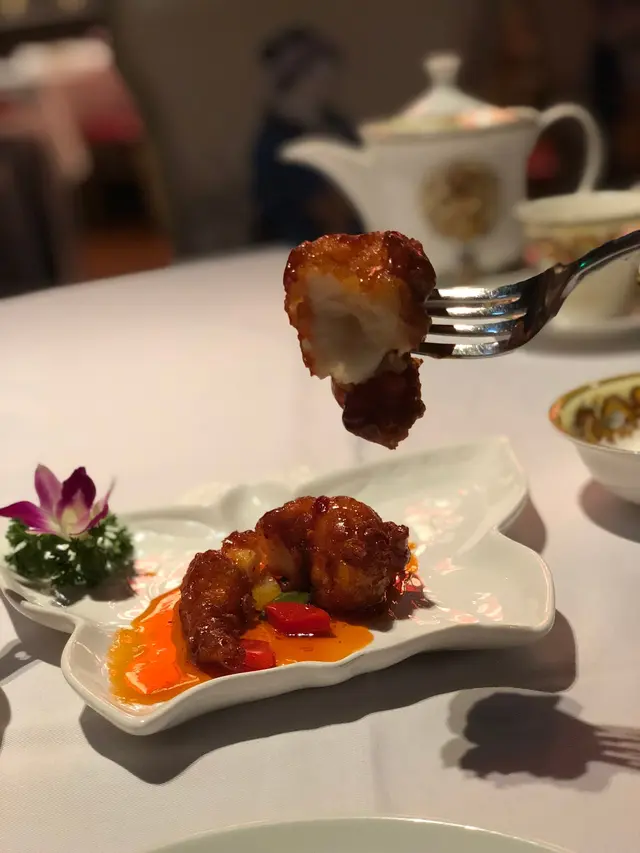 以前到國內旅行,不少旅遊景點附近都會有戲服租借給客人拍照,通常我都興趣不大,但早排的延禧攻略實在好看,大大增加了我對清朝故事的興趣,得知銅鑼灣有間飯店,可以任玩皇上皇后格格皇子的戲服,心癢癢好奇去了一趟。 格格府御膳店名高檔,配合形象,店內細心佈置,頗有特色。 價位如是,每人$498 的套餐,六款食物加甜品,散店的菜都要兩三百蚊一道,選擇不多相信大家都會選套餐。 江南三小碟看來精緻,木耳、肴肉及蘿蔔各一粒。 菊花豆腐湯吃手工,切成菊花狀的豆腐很搶鏡,湯清味道可以。 宮保大阿哥蝦球名副其實的大阿哥,蝦球新鮮大隻,炸得有水準,皮脆肉彈,宮保汁甜酸惹味,並不辣。 麻婆豆腐沒有出錯,辣道輕微,豆腐滑溜。 松露醬獅子頭一人一粒,肉質軟滑松露香,味道幾好。 格格府炒飯是有味飯一碗,裏面有少少蛋絲、蔥粒及魚子在面頭,不過不失。 桂花糕是另一道手工菜,金魚眼仔碌碌,栩栩如生,另有蝴蝶及花形,內藏一粒杞子,甜度適中,但質感過硬。 菜式味道其實不錯,但份量偏小,而且上菜速度極之有效率,服務一般,不過來這裏是為玩戲服,吃一餐,都冇咩所謂啦!…查看更多