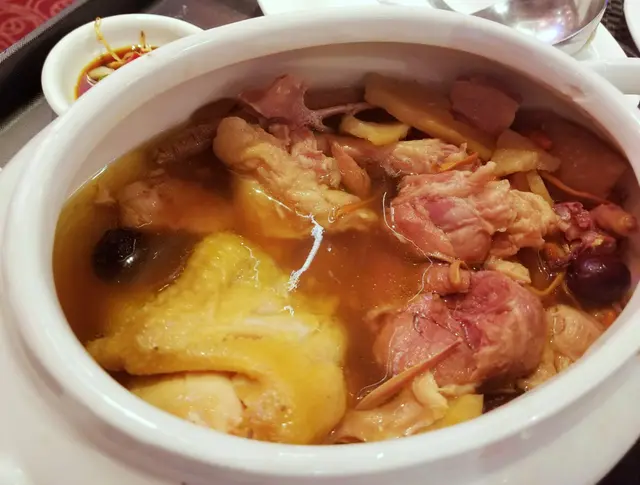 今晚公司請食飯😆慰勞一下工作勞心勞力既員工,即係其中一個係我啦😂雖然我地8個人叫左7個小菜!都已經食到滿載而歸,肚飽飽啦🤪第一道係宮廷御用鮮螺頭燉雞湯,真係好飲呢😆👍🏻清而不油膩,又好足料,哇,正呀👍🏻又食左第二道菜,千島大蝦球😊我好鍾意呢個菜,大蝦上碟做到外脆內爽口彈牙既大蝦,又有新鮮嘅水果沙律撈勻,好清新又健康👍🏻😆忍唔到口食左好多🤦🏼♀️真係好味架🤤最值得推介嘅係第三道菜,太子成名脆皮咕嚕肉,真係食落口外脆內軟,肉質柔嫩,唔使一陣公司成班友仔已經清左大半碟😅值得推介👍🏻接着係第四道菜係蒜子生扣珠江花錦鱔皇,真係肥美多肉又嫩又滑.....🤤👍🏻值得推介嘅菜式,雖然有少少油膩,難得一食再食也可以😆今晚注定要做肥妹啦!來都第五道菜真係有啲飽飽地啦🤪充滿骨膠原的菜色🤗成為女士最鍾意食既魚卜,又爽又重膠質,真係諗起都變靚靚啦😆👍🏻有西芹嘅配搭真係好夾,食落一啲都唔油膩👍🏻第六道菜更唔少得係食雞啦😆得獎銅盤蒸污糟雞🤪雖然唔明白點解改污糟雞甘既名😂覺得好好笑,一啲都唔污糟喎,仲好鬼好食添,又嫩滑又好味😆👍🏻最後一碟菜式係特色梅菜蒸菜遠😂唔知點解蔬菜會最後先上,我鍾意食咗清淡先再食濃味既野,但係呢個菜都好快手俾我地食清光了😂可能啱大家口味,真係好清甜又嫩又有梅菜口味😆👍🏻我飽住肚都食左幾條,唔執輸呀🤗食左一餐好野,呢間酒家有料到🤪哇....連法國🇫🇷藍帶,騎士勛章都有👏🏻👏🏻👏🏻西利西利.....我最中意呢間酒家特色係有一個大魚缸近入口附近,見識到特別大條既啜魚😜真係有口福又有眼福👍🏻😆老細話下次又來食多次😆👍🏻我諗起都開心....🤤…查看更多