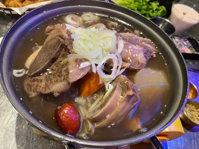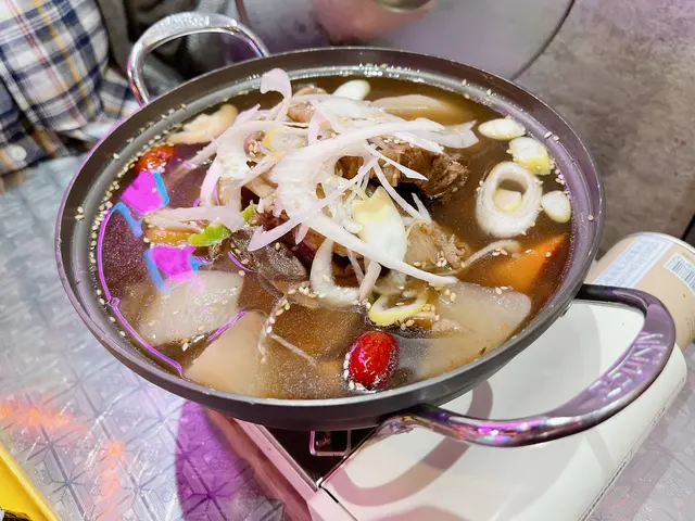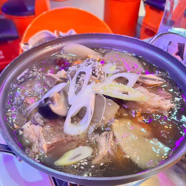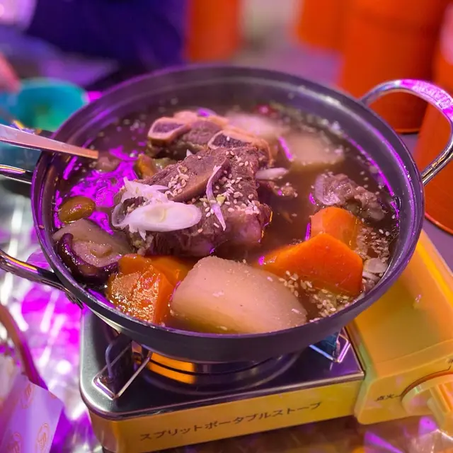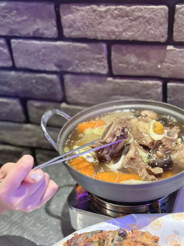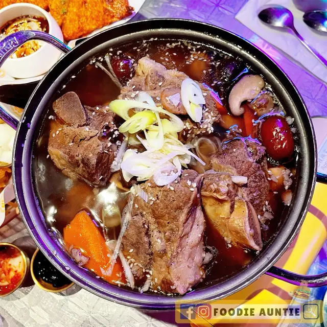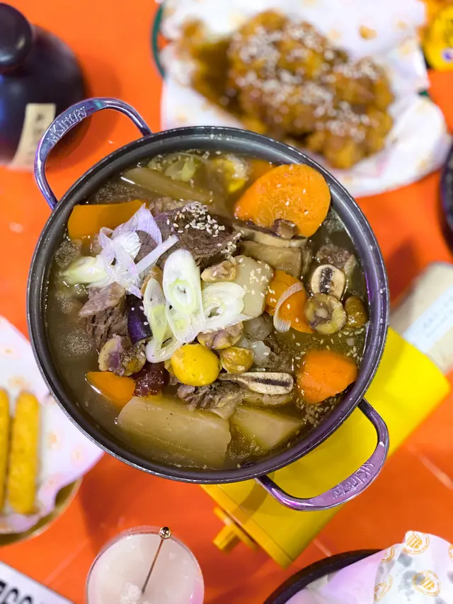 係打泰拳🥊附近見到有間韓風十足嘅餐廳「新沙洞大排檔Sinsadong Pocha」,小妹最鍾意食韓國菜,就一於試下啦!😏餐廳有超多打卡位📸,裝修以韓國🇰🇷現時最流行嘅newtro(뉴트로)為主題,復古嘅同時,又加入現代流行元素;如仿韓國巴士站嘅室外座位,內裏則還原了新沙地鐵站和路邊攤大排檔嘅環境,配上色彩繽紛嘅桌椅和韓式油桶圓桌椅,以及霓虹燈箱和帳篷裝飾,尤如置身韓國街頭~餐廳供應多款韓國地道美食:如紫菜包飯卷、炸雞、部隊鍋、牛肋骨和醬油蟹等;餐具更用上復古小鐵盤和彩色碟子。前菜小食有泡菜和涼拌芽菜。⭐️推薦❗宮廷燉牛肋骨鍋($288/2-3人份)店家參考咗韓國宮廷御膳食譜,加入紅棗、冬菇、栗子、蘿蔔等食材一齊熬煮,以食材天然甜味帶出牛肋骨嘅肉香~牛肋骨份量多,有4-5大件,肉質炆煮得軟腍入味,3人share食都冇問題。☺️⭐️推薦❗辣豬肉紫菜包飯卷($98)材料好豐富,有青瓜、紅蘿蔔絲、醃黃蘿蔔 、辣炒豬肉等,另外,店家加左紫蘇葉、芝麻等增添其香味和口感,比平時嘅飯卷更惹味。泡菜煎餅($98)煎得好香口,泡菜味道酸酸辣辣,惹味又醒胃。⭐️推薦❗秘製蒜蓉醬油炸雞($88/半份)炸雞炸皮薄而酥脆,入口滿滿蒜香,內裏肉質嫰滑多汁,佐酒一流!韓國🇰🇷今期流行加原粒蜂巢蜜係飲品裏面,有酒精或冇酒精都得。酒鬼嘅我地就叫左招牌原粒蜂巢蜜特飲—新沙洞米酒($98),真係有原粒蜂巢蜜係裏面架!蜂巢蜜令米酒更香甜,同韓國🇰🇷米酒酸酸甜甜嘅味道好夾。我同小妹最鍾意食麻糬❤️,所以一見到刨冰有麻糬就梗係要試下啦!😌黑糖蜜黃豆粉麻糬我刨冰($68)刨冰上淋上香甜嘅黑糖蜜加上大量黃豆粉和煙韌嘅麻糬,不錯嘅配搭!…查看更多