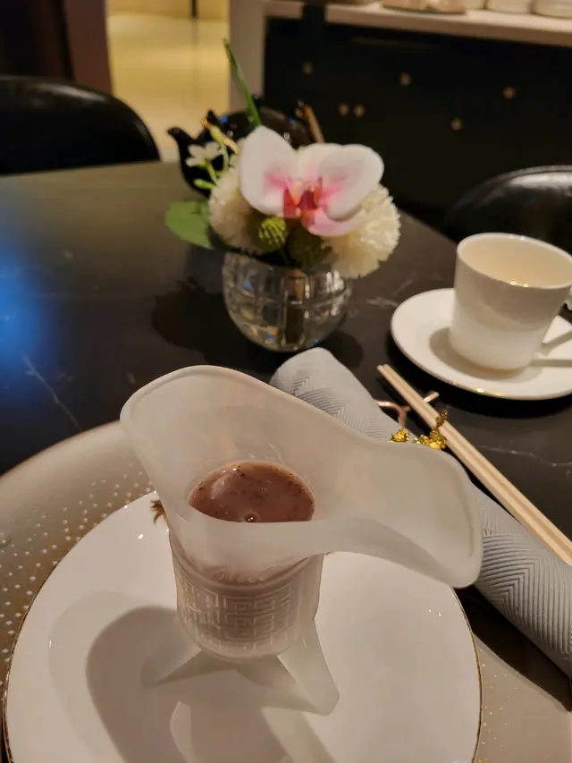 龍味館,位於中上環,感覺非常高級既中菜廳✨上環E3出口2分鐘就到,鄰近林士街同永安中心停車場,交通非常方便👍🏻座位優雅舒服,格調主打藝術風,靚😻餐廳有幾款特色套餐,都好正咁,單點就以招牌小菜同海鮮為主🥢龍味館大廳全日套餐🐲先上宮廷酒爵暖胃湯,個杯靚到一個點✨真宮廷風,蕃茄龍蝦濃湯,西湯煮法,蝦味濃濃飲落好舒服😌龍味點心拼盤,龍蝦蝦餃,混合左蝦肉同龍蝦肉做餡,蝦味好重幾高質👍🏻蟹籽鮮蝦燒賣,唔肥,味道都唔錯,卡邦尼小甘筍賣相好特別,原來係卡邦尼餡既咸水角,幾特別既中西合璧🤞🏻招牌菜🌟炭燒蜜餞黑豚肉叉燒,用個火熱住,非常厚切,亦都係師傅對肉質既信心,一咬就有料到,超腍超嫩既口感,配少少蜜汁唔太搶味😍真係好好味既叉燒,送埋白飯正👍🏻甜品係紅粉玉露,少女賣相原來係石榴風味,唔太甜好好味🥳高質高檔高品味中菜⛩️菜式中西合璧,特色得黎有真材實料,好味道😋唔錯既請客選擇👍🏻…查看更多