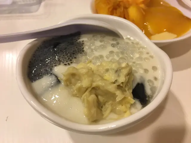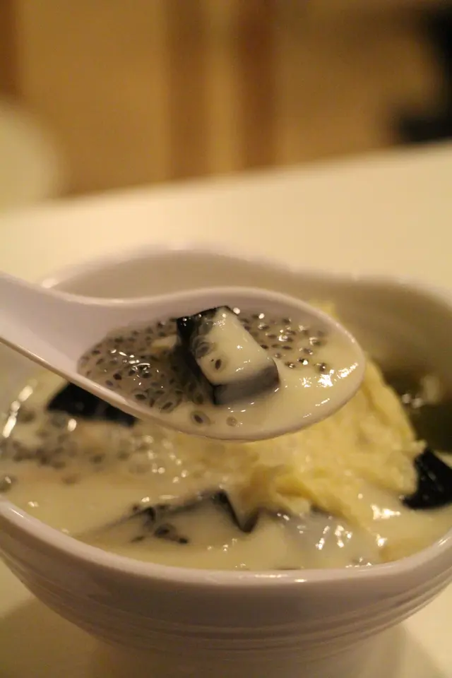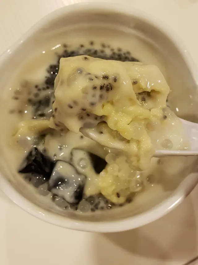 跟朋友聚會,聚會完意猶未盡,就一起去吃點小食及甜品再坐坐閒聊,選了去人氣甜品店〔甜姨姨〕,除了喜歡小店有傳統甜品外,更有其他小食、新式甜品及多款以豆腐花為主題的甜品。【六小寶】+【芒果特飲】(HK$88)很有日式便當盒的風格,除了有指定3款懷舊小食: 三色啫喱丶糖不甩及醬油糖心蛋外,更可以自選1款迷你牛角窩夫(口味: 港式奶醬/髒髒朱古力/草莓忌廉) 及自選2款街頭小食(吉列炸蝦/司華力腸/椒鹽炸雞/洋蔥圈/炸燒賣)及免費配選任何一杯沙冰一杯。【髒髒朱古力迷你牛角窩夫】滿滿的朱古力粉及朱古力醬,但又不是太甜,鬆軟的口感。【吉列炸蝦】蝦餅造型,蝦肉入口彈牙。【炸燒賣】即叫即炸,炸的香脆,外皮脆內裡軟,配合椒鹽味道有風味。〔懷舊小食系列〕【三色啫喱】是很多朋友仔,兒時去懷舊茶樓必點的彩色啫喱,正常發揮啫喱味道,重點插在啫喱上的小雨傘仔,受盡小朋友萬千寵愛的經典小玩意。【糖不甩】糖不甩配了很多花生,外皮亦夠軟糯。【醬油糖心蛋】有金黃液狀溏心,而且醬油很入味。【芒果特飲】有芒果蓉及芒果肉粒,還有西米露,椰汁和芒果布甸,而且很大杯,口裡充斥著滿滿的芒果味道。【尋榴敢】(HK$69)跟朋友都是榴槤控,這碗榴槤甜品除了有椰果丶涼粉丶綠茶果凍丶豆腐花丶奇亞籽及榴槤汁,這碗榴槤真是份量十足,入口啖啖濃郁粘身口感的榴槤肉,沒有苦澀味道,陣陣榴槤香,大大滿足了榴槤控的胃口。【木桶豆腐花】(HK$45) (製作需時,需要等15分鐘)即撞木桶豆腐花,用小木桶載著很可愛,打開蓋的豆腐花,熱騰騰保溫度極佳,每一口都非常滑,亦可以可以隨自己個人喜好加入紅糖。〔甜姨姨〕@auntiesweetcwb香港天后清風街13號地舖G/F, 13 Tsing Fung Street, Tin Hau, Hong Kong …查看更多