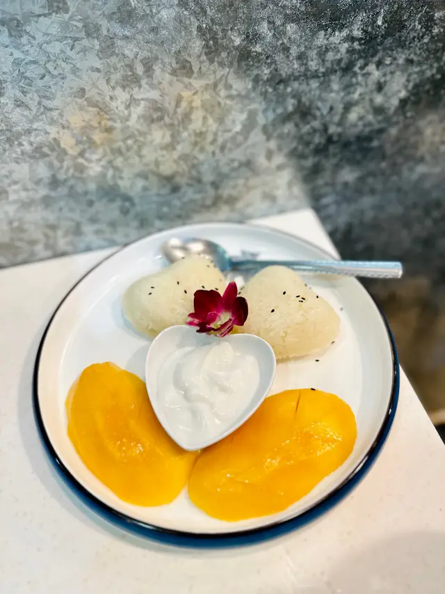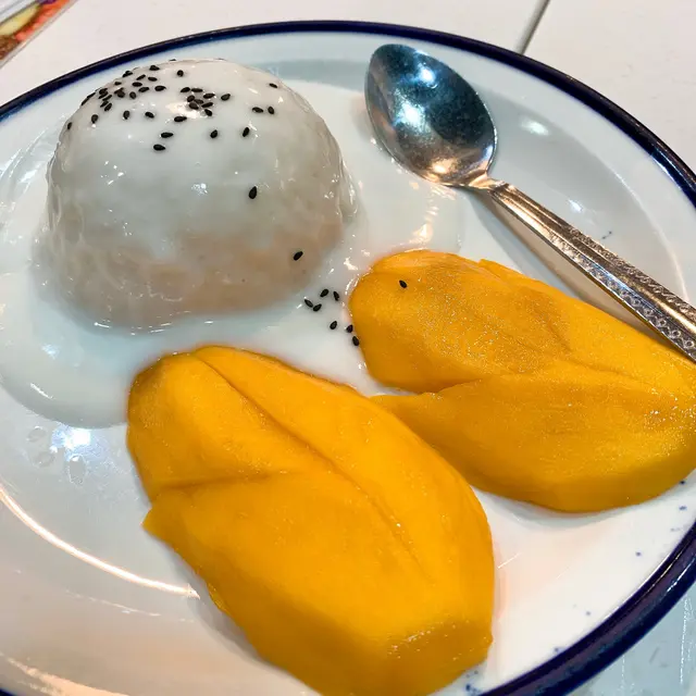 今日去九龍城打卡📸,中午醫肚仔,首選當然是泰國菜啦😊,必點甜品芒果🥭糯米飯,職員推薦了船麵,我和朋友各點了一款。我點了無骨海南雞船粉(金邊粉)$62,無骨啖啖肉啱曬我😅,配埋清甜嘅椰青$25🥥(跟餐半價),連椰青肉都食清🤣朋友點了牛丸牛肉船粉(河粉)$60,味道偏濃,微辣,份量算多,牛丸胡椒味偏重,牛肉幾滑,跟餐椰汁冰半價$17,香濃椰汁味,飲品不錯。另外點了一款小食和一款甜品 - 泰式原味烤酥餅(2塊)$48和小曼谷原隻芒果糯米飯$88,充滿泰式風味,而且價格合理。…查看更多