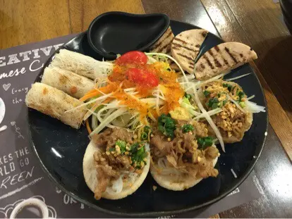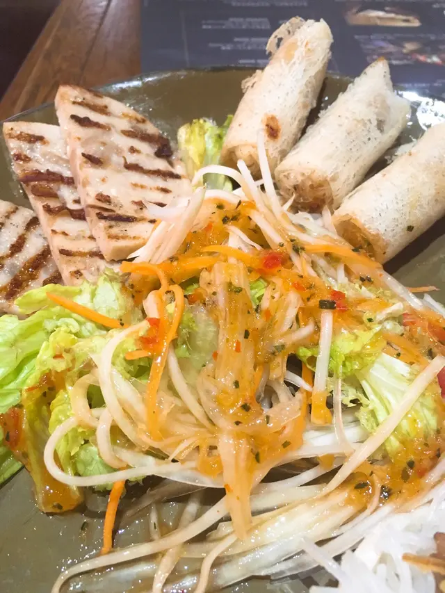 家姐生日,當然去下新地方。係眾多餐廳下,家姐揀左呢間what the pho試。本身一直以為冇得訂位,於是一心打算walk in啦。點知去到發覺佢有app可以預先拎定飛,確係方便,但一早知會更好!入到去,我地一行5人,佢比一張長的8人枱我地,仲話之後可能會有人搭枱。我就唔係幾想,見有張4人枱,就問可唔可以加凳。其實正常人都想成班人一山齊坐,邊個會想搭枱呀?!點菜時間:唔算做得好出色,對比真正的海南雞飯仲有d距離,但算入得口啦,起碼雞嫩,皮爽。個人覺得最正係小食拼盤,滿足晒為食嘅我,又想試呢樣又想試果樣嘅心態。春卷炸得好脆札肉厚到好似午餐肉,燒得香,好正!香茅牛肉蝦片,味道配搭好好,又脆又香。中間沙律食落好清新個人最愛紙米卷!清新,紙米夠軟,配搭雞絲同蝦肉,味道一流!原個椰青炒飯比想像中差。一方面椰汁佢得面果層有,下面同普通炒飯冇分別,加上個汁幾強烈,口感一般。驚喜之作!可能冇期望。首先有5大塊豬頸肉,濕炒的水分量剛好,唔會水淋淋,又唔會太乾!正常咖哩雞,咖哩唔係辣果種。我地即刻叫左兩碗飯,撈白飯一流!加甜品單叫左糯米飯,侍應話冇黑糯米,剩白糯米得唔得。由於我地好喜歡食呢個,冇黑糯米都照殺。但冇左黑糯米的配搭仲算係糯米飯咩?少左黑糯米嘅口感真係差左d。好在面頭的椰汁好好味,唔太甜!我姐鍾意千層糕,就叫埋試下,少少暖,有口感,不錯!整體黎講都叫唔錯,只係侍應要再醒目d,途中要多隻西匙,佢比左中式匙囉!…查看更多
