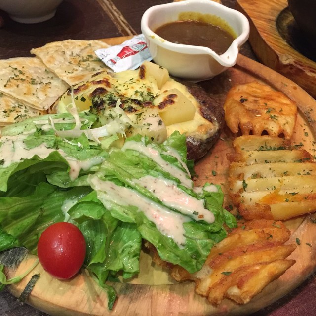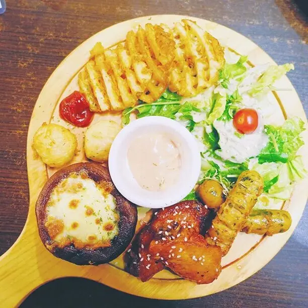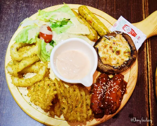 小妹一直從不同的渠道中看見不同人上傳一個芝士飯的圖及影片,查看之下,原來是出自這家飯意。小妹是個芝士控,當然不會放過這裡!!!😈😈😈餐廳位於深水埗,距離地鐵站有一段距離,找了一陣子才找到😂來到這裡,小妹二話不說點了我的目標😈嚐嚐那個傳說中的邪惡芝士飯。 招牌芝士熔岩蛋漿飯 ($48)一上台我們可以看到熱騰騰、放了紫菜在面頭的鐵板泡菜炒飯。接著,店員姐姐會幫我們加入芝士同蛋漿,然後攪拌他。你們看!芝士是整碗!整碗!整碗!(很重要,所以要說三次😂)的倒進去呀!😱😱 小妹看到都快要尖叫了!😍😍😍 (P.S. 另一碗芝士是朋友的餐點要用的)店員幫我們攪拌成這個樣子便離開了,一片乳白色好像不怎麼吸引😂不過我們再自己攪拌一下,顏色便跑出來了蛋漿和芝士跟飯粒完美地混合,飯亦帶點濕潤,吃下去不會很乾😋😋 加入泡菜可以中和芝士的膩,而紫菜令飯更加香👍🏻 而整個飯只帶有很輕微的辣,適合不能吃辣的人。它看起來份量不算多,不過始終有很多芝士,吃了會比較易飽,所以絕對是夠吃的😂 朋友選了鐵板韓式芝士炒年糕 ($50)上台時煮好的拉面年糕是另上的,店員姐姐會在我們面前把面和年糕倒進鐵板,接著跟芝士飯一樣加入一碗芝士攪拌。小妹覺得這個是不辣的,只是甜甜的。年糕煙煙韌韌,硬度適中。面煮得不會過軟,蠻有咬口的。裡面還有些豬肉片,肉質很嫩口👍🏻👍🏻我們加了$20配蒜蓉包、沙律和飲品。蒜蓉包的包底有點過軟,可以烘得脆一點會更好。沙律也太大一碗了吧😱😱😱 超值呀.......沙律可選麻醬和千島醬,小妹認為配麻醬更出色。朋友點的椰汁紫米冰很重椰汁味,甜度適中。柚子檸檬紅茶一開始並沒留意有「柚子」二字就點了,後來喝的時候發覺怎麼有蜜糖的味道,細看下才發現😂 小妹認為這個不錯喝,很清新,可以消消滯😌😌另外我們還叫了兩款小食😂 (黑洞胃在此呈現)第一個是 小食拼盤 ($42)拼盤包括了香辣米腸、水牛城雞翼、脆薯格、芝士烤大菇、吉列魷魚圈和沙律。米腸咬下去挺紮實的水牛城雞翼的醬汁甜甜酸酸的,非常惹味😋芝士烤菇:菇非常軟腍,咬下去汁都擠出來了😆 內餡是芝士加上吞拿魚魷魚圈很不錯,很爽口彈牙,不會弄得像吃橡皮筋那樣👍🏻👍🏻第二個是燒原條bbq豬肋排骨 ($68)第一眼看到$68,小妹真的覺得驚訝😱😱 平時在其他餐廳要吃豬肋骨,$68這個價錢根本沒可能吃到呢!而且這裡份量超大的😱😱😱😱 之前去別的餐廳吃,二百多元一個套餐吃到的豬肋骨只有這個的一半大小(而且又少肉又不好吃),所以飯意的這個豬肋骨性價比極高呢!肉的部份也算多,不過煮得不是太軟腍,有一點難咬。豬肋骨本身沒有什麼味道,只是靠旁邊的醬調味。那個醬也是酸酸甜甜的,感覺跟小食中的水牛城雞翼的醬是一樣的,挺開胃。雖然不是特別好吃,不過以這個價錢來說,真的不能挑剔太多😂小妹認為這裡的餐點都很經濟實惠, 有時間一定會再來試試其他。…查看更多