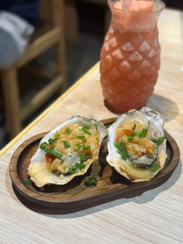 見屯市開咗新餐廳食烤魚,仲見佢做緊 $10隻烤蠔就試一試!🔥烤魚有5個口味,有辣有唔辣,雖然平時好少食辣,但呢排實在太濕,要食少少辣嘢去一去濕先得!餐廳環境都算OK,係常見嘅現代中國風裝修,😇有兩人、四人同大圓枱,多人去食都可以聚一聚!枱都算大,二人枱放大大盤烤魚都夠位,通風都OK,食嗰陣唔會好大陣味,總體都唔錯!🦪川味活燒生蠔 限時優惠 $10/隻(原價$28/隻)呢個蠔真係幾抵,$10 隻又大又肥美,幾新鮮厚肉,加埋蒜蓉烤,烤得啱啱好,唔會太乾 ,好惹味!我見枱枱都嗌6隻以上,成排上好吸引!🐟青花椒麻香烤魚(江團魚) $328因為想食麻嘅感覺,所以叫咗微辣+中麻,上面好多一粒粒嘅青花椒,真係麻得嚟好爽!今次叫咗江團魚,魚嘅皮煎香過,有少少脆,魚肉幾厚幾多下,兩個人就算唔食飯都夠飽!🐥涼拌蔥油雞 $88雞嫩滑,啖啖肉,蔥油都好香。🍹夏日傾情 $38個杯好似菠蘿幾得意,有少少似沙冰,甜得嚟有水果香,好有夏日 feel!🍺芝士奶蓋茉莉綠茶 $32綠茶清清哋,加埋一層薄薄嘅芝士奶蓋,用玻璃杯裝唔講以為係啤酒!配濃味嘅烤魚夠解渴!…查看更多