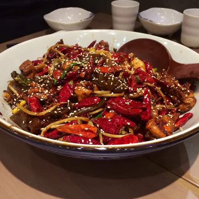 以前唔食得辣,行經「嫲嫲辣辣」都只會掂行掂過。不過自從我同同事一齊修煉成功後,就對食辣產生興趣,呢日仲相約咗去餐廳挑戰一下😜。雖然我講到咁,但其實餐廳都有提供唔辣嘅食物🤣,就連干鍋都係。呢度有做午市套餐,分兩個類別:干鍋客飯同小菜客飯,後者會相對平啲,不過無論邊款客飯都會送指定飲品,並免收加一服務費。我哋分別嗌咗干鍋同小菜,再Share食,咁就可以一次過食哂兩款口味✌🏻。午餐份量都多㗎,又有成碗飯🍚,一定食得飽。干鍋客飯($69),🍲干鍋口味任你選,包一款鍋底同三款配菜,另再追加一款配菜就要多$20,都幾貴。先講鍋底,有四款可選,包括香辣、麻辣、孜然同蔥爆(免辣)。我毫無疑問地揀咗麻辣,因為麻味令人著迷。🌶辣度亦有得揀,由微辣到火爆辣,而我哋就當然由BB級食起。上碟後第一下感覺有啲不安,我明明嗌微辣咋喎,點解會嚟咗個辣椒山嘅😳。不過食落發現佢係合乎商品說明條例,辣度係有嘅,但輕鬆食到,而且麻味同鹹香亦都好足。⚠️留意返,食到尾要有心理準備個底有少少油,但實屬平常事。配料方面,款式激多,有成28款葷菜(肉類及海鮮)同30款素菜(蔬菜及菇類),實在令人眼花撩亂。我哋要咗豬頸肉、雞腎同埋茶樹菇,三樣份量都多,夠餸食晒成碗飯🥢。豬頸肉有好多片,雖然佢無好似泰式咁將佢煎香,但都幾好食、好索味🐷。長長嘅茶樹菇口感爽爽的,佢比其他菇多一份香氣🍄。而雞腎就麻麻哋,因為太碎濕濕喇,喺一堆辣椒入面,好難搵到佢哋出嚟🐔。蓮藕仔炒牛肉($56),云云菜式之中揀佢係因為見到有蓮藕仔,莫非佢就係我早排食過嘅「藕藤」,而家先知佢都幾常見🙈。蓮藕仔超爽脆,無渣,入面嘅細孔將餸汁鎖住,每啖咬落都爆哂汁。🐮牛肉係用上鮮牛片,份量唔少,兼且幾大片;其他配料仲有芹菜、紅椒同木耳等。呢碟炒牛肉嘅辣同干鍋有所不同,依款辣帶少少酸,幾開胃🤤,而且芡汁亦比較多,適合撈飯。跟餐送嘅豆漿屬正常水平🥛,估計係餐廳自家製,味道幾清,有豆香,亦唔會太甜。我哋嗌咗凍飲,因為驚要用嚟滅火,但最終唔使,下次可以嗌熱嘅。環境方面,餐廳面積唔大,座位格局有啲迫,不過幸好每枱都有放上隔板,令到客人之間嘅接觸減少。再者,整體衛生亦幾好👍,餐枱乾淨無污垢。冷氣夠凍,同樣係呢度嘅一大優點。總括嚟講,食得辣之後真係發掘多咗好多美食😋,原來嫲嫲辣辣好好味味,哈哈。價錢方面,就咁睇會覺得唔算好平,但其實食物份量多,菜式又夠特別;其他地方食干鍋,隨時索價兩倍添,所以值得推介。我會再嚟幫襯,下次要挑戰高一級辣度先😛。…查看更多