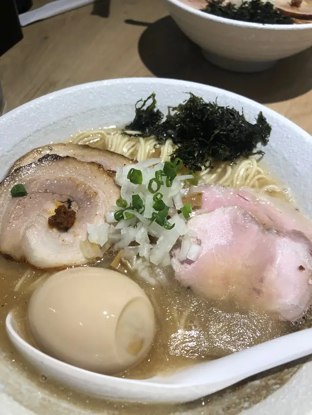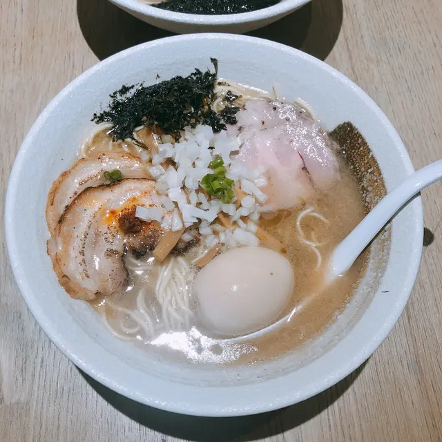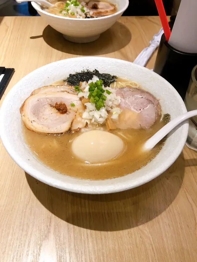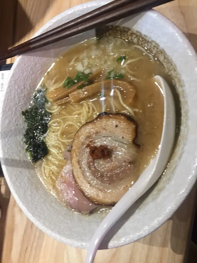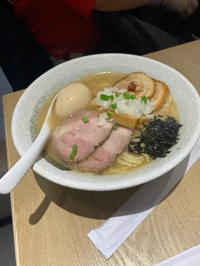 麺処一家成間鋪頭淨係得三款拉麵賣,三款都係同一個湯底,唔同既就只係啲叉燒,妹妹推介係跟慢煮豬肩肉,弟弟推介就係跟火炙豬腩肉,而店長推介就係兩樣都有。淨係得一款拉麵既湯底感覺更加專業,令我更加期待🤩 1️⃣店長推介($98)(溏心蛋+$10)湯底一律係濃厚豚骨魚介醬油湯,飲落味道好濃,唔係死鹹,加埋啲蔥、洋蔥粒、紫菜,食落好香,更加有啲洋蔥既新鮮感。而且好少見拉麵店會用呢啲紫菜碎,撈埋落個湯底到味道更加香濃!用既麵係幼麵,好掛湯🤤店長推介可以試齊豬腩肉同埋豬肩肉,個人鍾意豬腩肉多啲。豬腩肉肥瘦部位各半,加上燒過,帶油香😋而豬肩肉質感會比較彈牙啲,而且因為係慢煮既關係,肉質幾軟滑,唔乾唔鞋👍 另外加左隻糖心蛋,溏心蛋夠入味,而且蛋好流心,正! 2⃣️妹妹推介($88)湯底係同配料都係一樣既,不過呢款就淨係得豬肩肉。 …查看更多