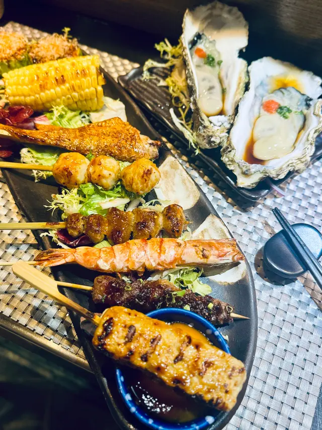 最近去左一間喺旺角嘅居酒屋~裝潢設計都好有日本居酒屋味道🏮地下係吧枱, 而樓上就係榻榻米~ 👦🏻二話不說就話要坐吧枱睇叔叔煮野食🤟🏻我地叫左”冰點夏日二人前”同埋壽司🍣先付兩点盛前菜有漬物同明太子薯仔沙律🥗 好開胃~ 沙律差d俾👦🏻搶住食晒時令日本真蠔🦪生蠔好大隻~真係大人隻手掌咁大!!🙌🏻肥美之餘仲好鮮甜好juicy~ 池魚🐟2人餐可以揀四色刺身拼盤或者池魚一條~我地揀左池魚🐟擺盤好靚, 池魚刺身都好新鮮精選燒物拼盤🍢燒物拼盤有8款唔同嘅燒物~喺面前一路睇住佢燒特別有風味🍢🔥一燒完就上枱~熱辣辣好香♨️ 燒物火侯同味道都拿捏得好好 👦🏻最鍾意芝士雞肉串同大蝦🍤泡菜鴨肉冷稻庭好啱夏天嘅冷烏冬配埋Kimchi同鴨肉~好醒胃🤤 鴨肉好香, 烏冬滑得黎口感煙韌 另外仲叫左火灸壽司五味🍣最後食埋個朱古力蛋糕做甜品~好滿足💛…查看更多