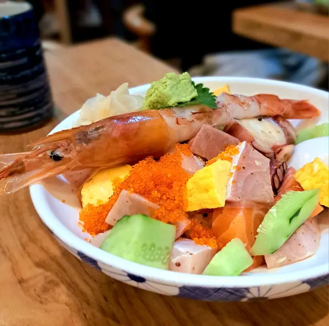 住在大埔的同事大力推薦這間餐廳 除了十分抵食 更加好味 新鮮 由於餐廳受歡迎 朋友多次提醒 想試一定要預先打電話訂位 可以訂12:00 或者 13:00 用餐時間一個鐘 餐廳位置雖然不是在大街 但午市座無虛席 所有御膳包括有 前菜 沙律 蒸蛋 湯 御飯 午市更加免收加一 以呢個價錢 十分抵食 可以理解到受歡迎之原因御和亭魚生丼御膳 $88魚生飯配料多 有三文魚 油金魚 玉子 蟹籽 青瓜 粒粒厚切魚生 新鮮足料 赤海老亦大隻新鮮 魚生肥美 加上清爽的青瓜同青瓜 是令人十分滿足的味道餐廳魚生飯底有加了芝麻 更添風味 因為魚生飯配料多 可以要求加飯 …查看更多