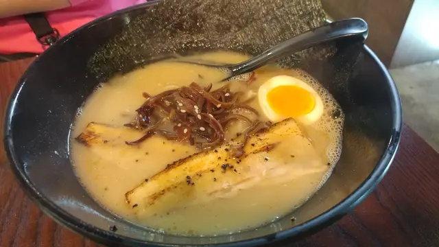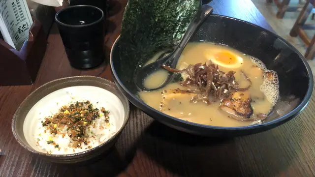 九展雖然有好多唔同嘅餐廳,但係食拉麵嘅就只得呢一間武士拉麵menu上面嘅選擇唔算太多,但係基本款式嘅拉麵都有齊晒今次我點左德川將軍拉麵,即係醬油魚介豬骨拉麵,配佢個海苔香松飯拉麵湯底鮮甜,叉燒燒得剛剛好,肥瘦適中,糖心蛋煮得好好食,個蛋黃放左係個麵一陣就岩岩好!特別想讚一讚佢個飯,食完都唔覺得滯!除咗嘢食好味之外,我覺得呢度個老闆好有人情味,我同同事坐餐廳吧枱,討論緊間店入邊既日本武士刀,老闆同我地講佢係日本買翻黎同佢既歷史我個人好欣賞呢種同人分享經歷既老闆…查看更多