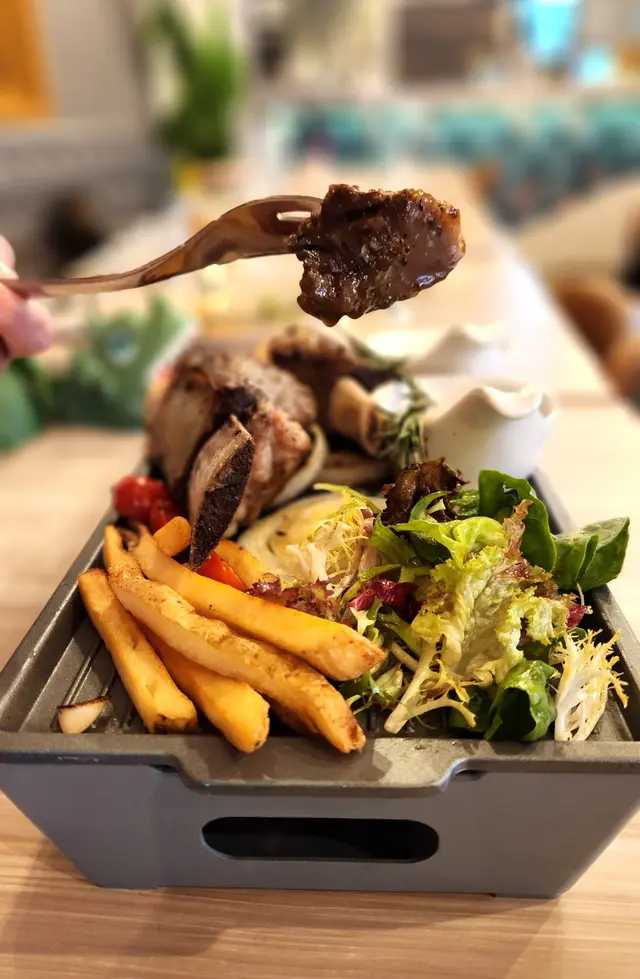 牛肋骨烤至焦香,一咬入口牛肉更加入味更豐富,牛肉肉質鮮嫩