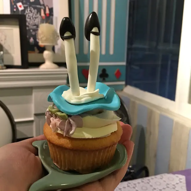 等咗好耐,終於都可以約埋另一位愛麗絲發燒友嚟“朝聖”一下。Cafe 要book 位,但唔滿座都唔俾walk in (因為同一架電梯上去有靚女walk in 但失敗)。一出電梯見到個門面其實已經有少少失望,因為門口隻兔先生剪影已經爛咗🤥店員確認book 位然後請我哋坐到收銀前面嘅檯度坐,明明仲有其他檯,然後我哋揀咗另一張柱旁嘅檯。環境非常細,只有七至八組檯櫈,所以真心係cafe 而唔係餐廳。檯同檯之間都幾迫,主題佈置亦都唔係太精致,令到滿心歡喜嘅我哋都幾失望。食物方面,餐牌有兩款,$188 for 1/ $428 for 2。不過佢二人餐就減咗個餐湯,如果唔係會更抵食。二人餐包兩款前菜,其實就係沙律。我哋點咗「活生生的花園The Garden of Live Flowers 」同「跟著白兔先生Follow the Rabbit 」,其實就係煙三文魚沙律同香橘沙律。味道正常啦,個三文魚沙律幾好食,不過份量都大份,食完一盤菜都飽咗3成。叫多咗個小食-「火烈鳥打槌球Flamingo's Croquet」,即係兩款味道嘅雞翼,肉質嫩滑,沒有生也沒有煮得過熟,讚!主菜可以揀兩款,一個飯一係意粉。我哋揀咗「大磨菇下的生活Living under the Mushroom 」同「公爵夫人的寶盒」即係黑松露野菌意粉同牛肝菌藍青口燴意大利飯。嗱,個意粉唔知點解炒得好有鑊氣,即係咁,意粉係唔應該有鑊氣嘅……不過個燴飯就好好食,出乎意料。😋😋😋甜品包一款「是日甜品」同「愛麗絲杯子蛋糕」各一,點知蛋糕七點就賣晒,仲要隨便俾個石板街雪糕,勁失望。🤧🤧🤧個杯子蛋糕就係美心包裝孖寶加糖霜,自己諗咩味。餐飲包兩杯,可以嗌普通咖啡或茶又得,特飲又得。我哋叫咗主角「愛麗絲Alice 」同「獨角獸Unicorn 」。大家估吓係咩嚟?忌廉溝鮮奶同玫瑰荔枝梳打。飲品方面我哋一致俾滿分,又靚又好飲。不過提一提,又係只收現金,記得帶定錢啊!最後仲要講個洗手間,成地水,仲要連廁紙架都無。如果佢搬去觀塘工廈有幾千呎就會回頭,如果唔係……88啦。…查看更多
