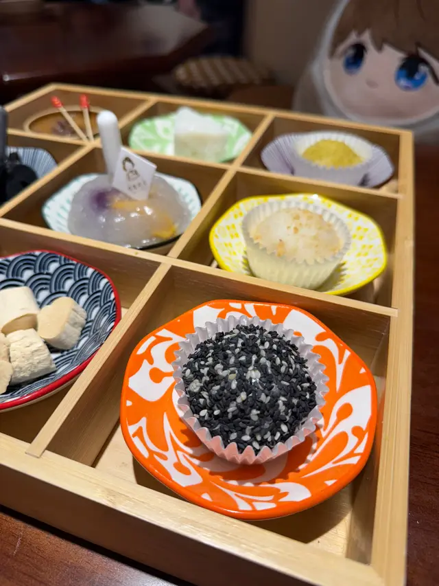 之前見到介紹呢間係食香港懷舊小食9格擺盤好靚 特登約埋朋友嚟食嚟到發現仲有新出草莓冰糖葫蘆系列店面色調主要係以鮮艷橙色作為設計入面好多裝飾都有香港傳統味道撥輪電話、舊式水壺/電視/風扇擺設最近4月仲有姜濤生日應援佈置本身係間社企 唔係姜糖都會支持- - - - - - - - - - - - - - - - - - - - - - - -1. 草莓冰糖葫蘆糖不甩呢個糖不甩創新得嚟又估唔到咁冇遺和感糖不甩個糯米整得軟糯 食落係有咬口但又唔會黐住啲牙 下面舖滿花生碎碎仲加咗啲草莓果乾 甜中帶酸 多咗清新口感同埋上面有啲大粒又紅草莓冰糖葫蘆伴碟草莓果肉好甜 外層冷卻糖漿唔會好硬/黐牙2. 草莓冰糖葫蘆奶蓋冷泡茉莉呢杯冷泡茉莉上面有粒草莓冰糖葫蘆點綴 已經好靚 都幾打卡able 奶蓋味道唔算好濃飲到冷泡茉莉嘅茶味係超級清香先淡淡茉莉甜 後微回甘 有冰更加清爽3. 懷舊糕點九宮格拼盤呢個拼盤應該承載好多人嘅回憶入面9款懷舊糕點都係細個食過包括雙薯流心西米糕、流心芝麻卷香濃黑芝麻/開心果/手炒花生糯米糍砵仔糕、叮叮糖、花生糖、白糖糕- 西米糕餡係綿密嘅黃心蕃薯&紫薯蓉配支西米醬吱入個餡度 做到流心效果- 芝麻卷本身用咗黑芝麻整 好似菲林所以都會叫菲林卷 仲會配支黑芝麻醬都係吱入入面 流心又有雙重黑芝麻味- 糯米糍入面啲餡係好飽滿 咬開好多碎碎尤其花生口味係手炒嘅 食落更脆更香- 砵仔糕好特別 用咗古代瓦碗同竹籤做裝飾要自己刮邊挑起砵仔糕 黃糖紅豆唔會太甜- 叮叮糖、花生糖口感香脆 同細個食味道一樣- 白糖糕就比較軟糯、口感煙韌 帶有純正嘅甜…查看更多